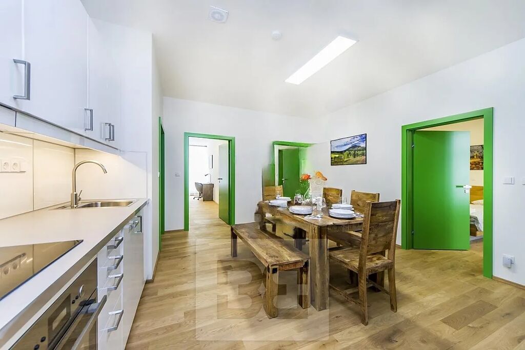 Měsíční nájem 16500 Kč + 2000 Kč zálohy na služby (elektřina, internet, topení, voda, odpad, společné prostory). Vratná kauce 18500 Kč, provize RK 1x nájem + DPH 21%.