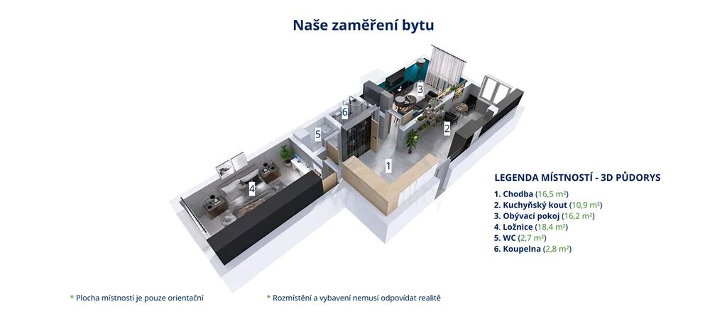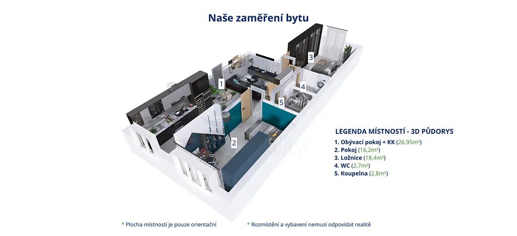 ✅ Dispozice 2+1 s možností 3+kk