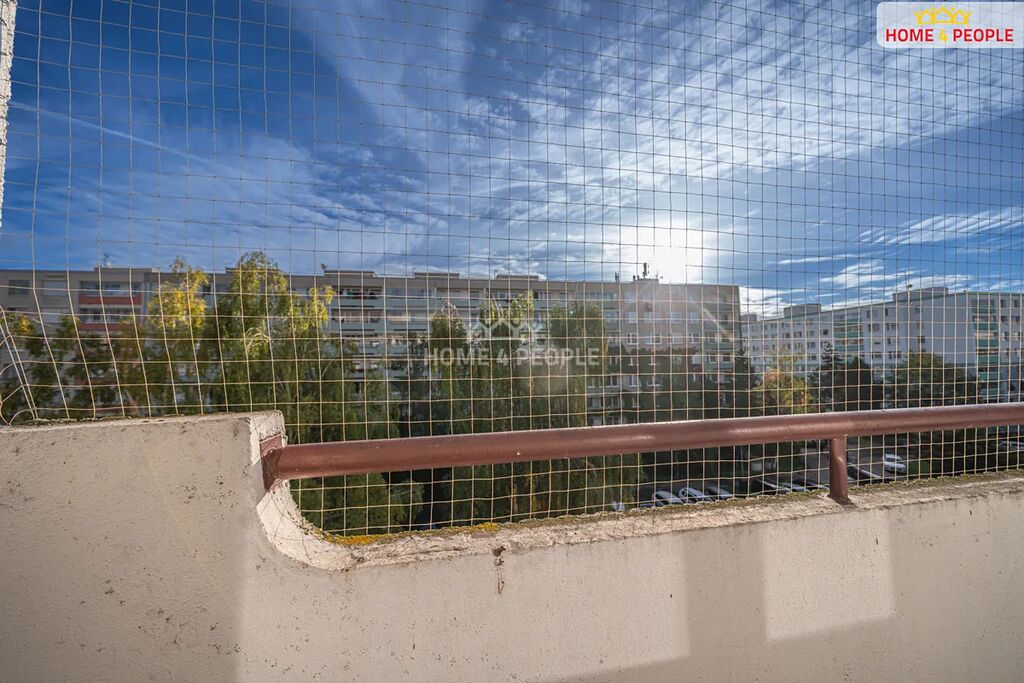 Lodžie je orientována do ulice a je vybavena ochrannou sítí proti holubům.