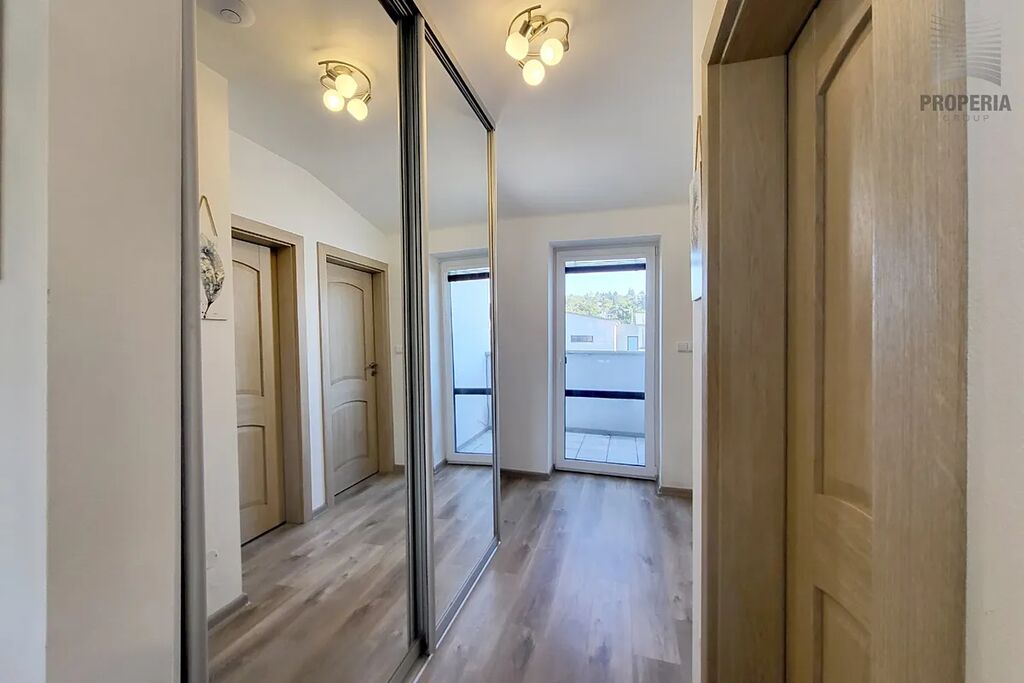 Ve výhradním zastoupení nabízíme k prodeji byt 3+kk s balkónem i lodžií a parkovacím stáním v žádané lokalitě Popůvky u Brna. Jedná se o novostavbu kolaudovanou v r. 2019 s unikátním umístěním a fascinujícím výhledem. Byt o CP 79,6 m2 se nachází ve 2. patře, parkovací stání přímo u domu. Ve všech pokojích je nainstalovaná klimatizace, byt má podlahové el. vytápění, okna s trojskly a venkovními roletami, kuchyně - myčka, indukční varná deska, digestoř, koupelna s vanou a umyvadlovou skříňkou, WC samostatně. Ložnice - vestavěné skříně, předsíň - zrcadlové vestavěné skříně, požární hlásič. V domě v přízemí k dispozici kolárna/kočárkárna. Měsíční náklady: el. 3.000,- Kč + SVJ 3.000,- Kč.