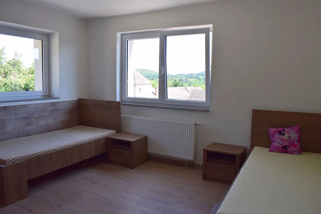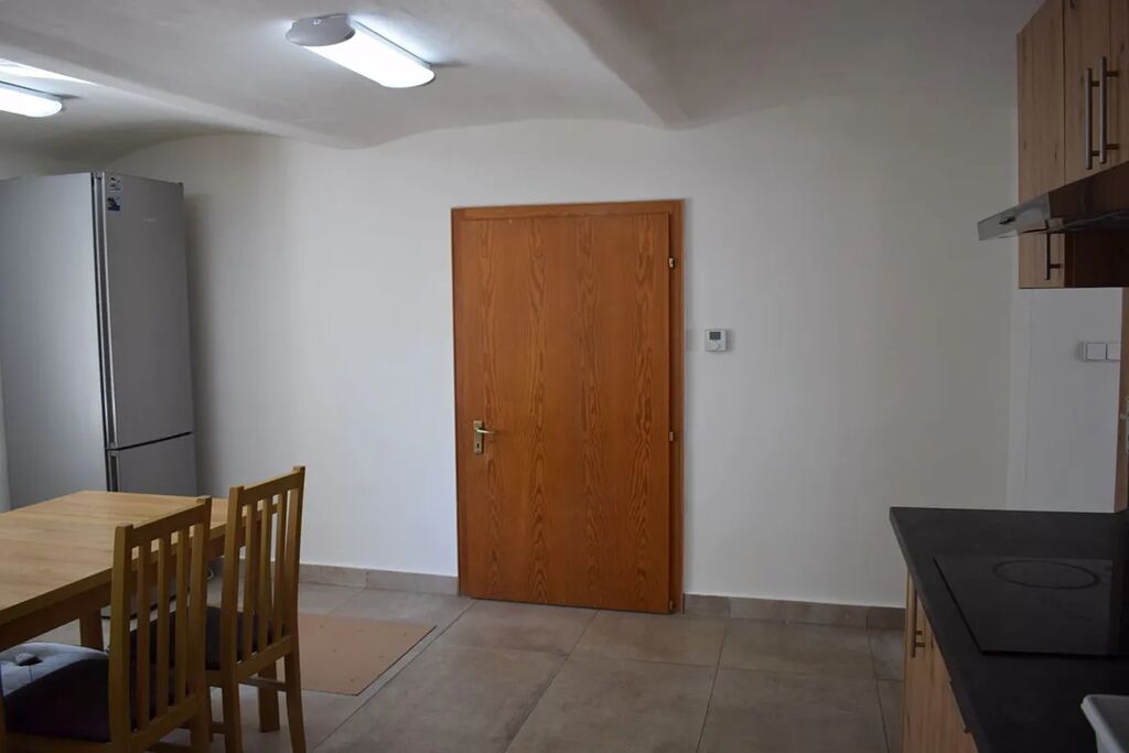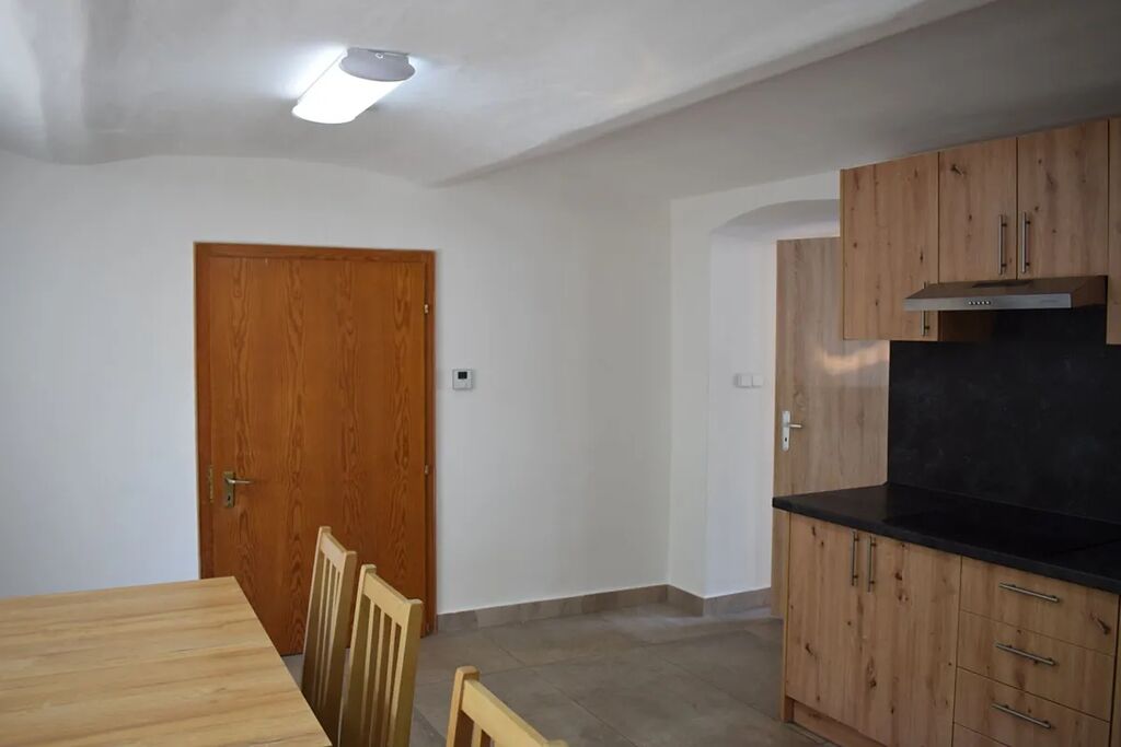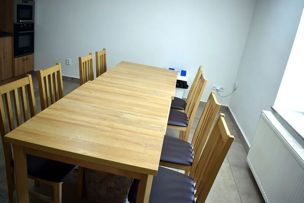 V Těšovicích u Prachatic, pronájem zrekonstruovaného domu o velikosti 4+ 1. Sestává se: v přízemí chodba, šatna, technická místnost, WC, velká společná kuchyně vybavená kuchyňskou linkou (mikrovlnná trouba, elektrický sporák se sklokeramickou deskou, digestoř, lednice), velký stůl se židlemi, pokoj se skříní a postelí. V patře 3 pokoje, dvě samostatné WC mísy, dvě sprchy a umyvadla, úložný prostor. Celkem je zde 8 postelí s nočními stolky a osm šatních skříní. Před domem možnost venkovního posezení. Majitel rekonstruoval nabízenou nemovitost za účelem pronájmu firmám pro ubytování řemeslníků. Do Prachatic 5 km, na přechod Strážný 35 km. PENB nebyl dodán, proto uvádíme třídu G. Majitel požaduje kauci ve výši jednoho nájemného + provize RK jeden nájem.
