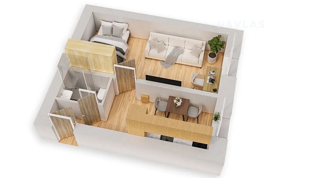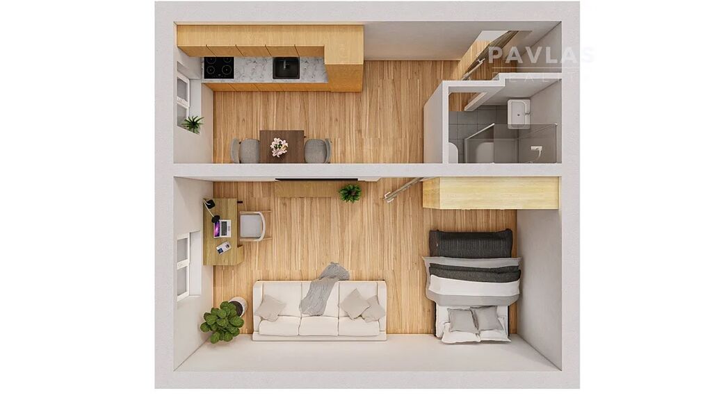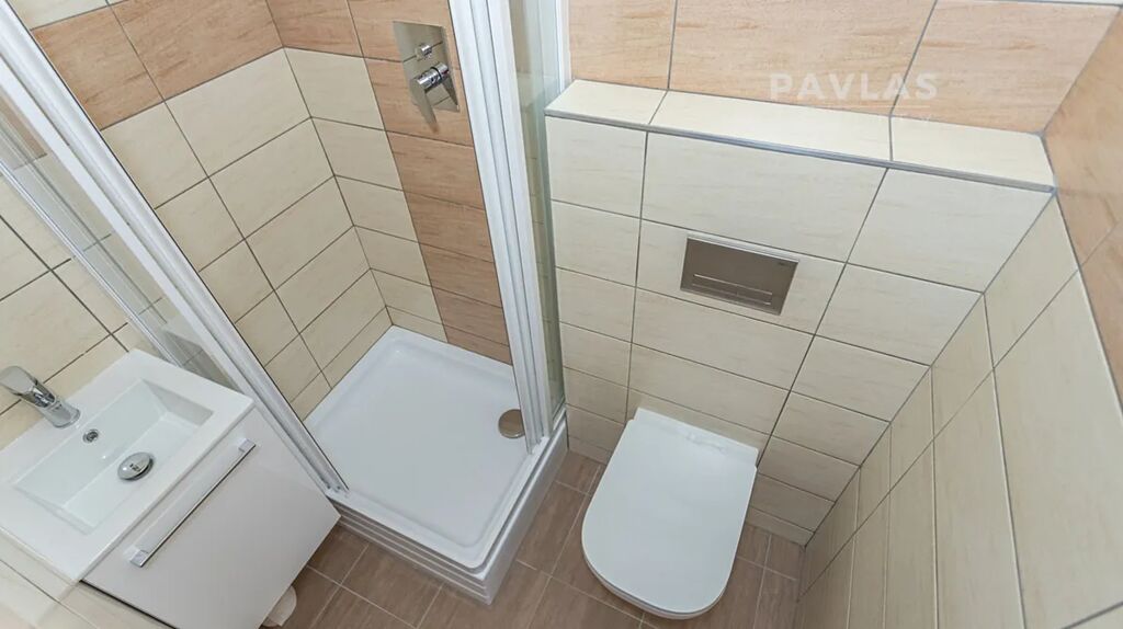 Byt o rozloze 36 m² je ideální pro jednotlivce nebo pár. Nabízí prosvětlený obývací pokoj s výhledem do zahrady a praktickou koupelnu se sprchovým koutem. K bytu patří také sklepní kóje o velikosti 1,25 m², kde si můžete uložit sezónní věci.