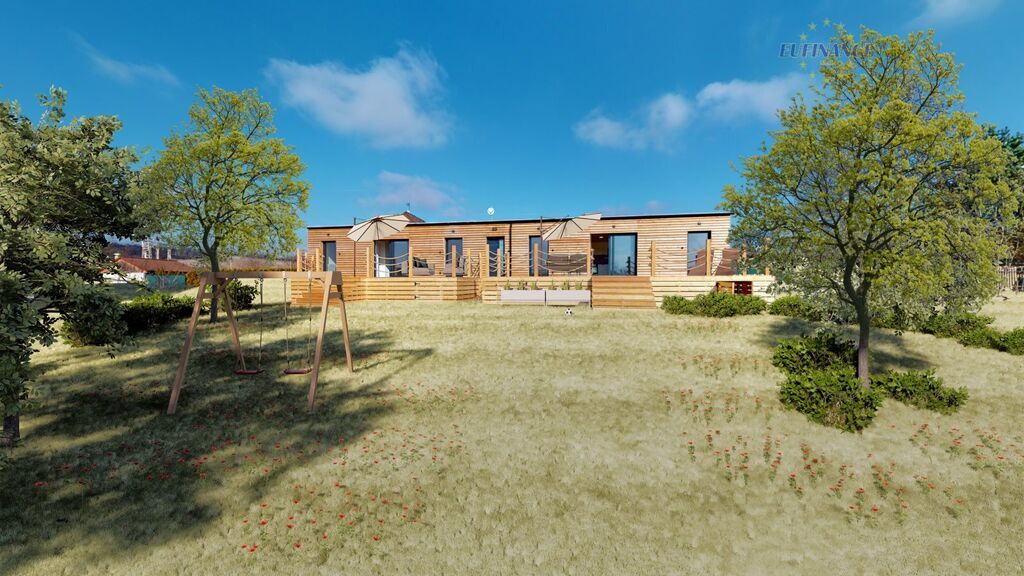 Nízkoenergetická dřevostavba byla zkolaudována v březnu 2023, je napojena na městský vodovod i kanalizaci, elektřinu 230 a 400 V a internetové připojení (WIFI v ceně nájmu). Každá bytová jednotka je vytápěna tepelným čerpadlem vzduch-vzduch (úsporná klimatizační jednotka zn. Haier, která v zimě topí a v létě chladí). V pokojích jsou také k dispozici elektrické radiátory s možností nastavení na dálku přes WIFI). Na jižní straně bytů jsou všude osazeny dveře s ventilací a v obývacím pokoji pojezdové francouzské dveře. Všechny dveře i okna mají osazené posuvné sítě proti hmyzu. Každý byt má novou kuchyňskou linku vč. nových vestavěných spotřebičů (lednice, mrazák, mikrovlnná trouba, horkovzdušná trouba, myčka, digestoř), které jsou ještě 3 roky v záruce. V celém bytě jsou položeny vinylové podlahy. Koupelna je vybavena kompletní novou sanitou viz fotografie. Každý byt má své vlastní podružné měřiče vody i elektřiny.