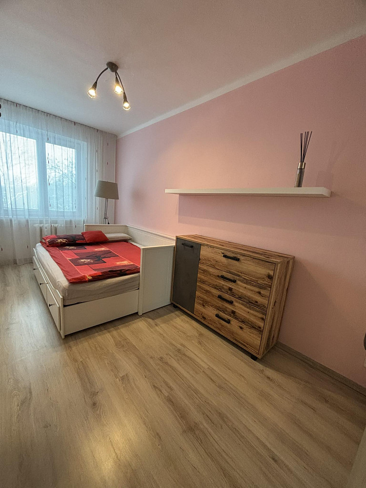 Pronájem kompletně zrekonstruovaného, nezařízeného bytu 3+kk 63m² s lodžií, v lukrativní lokalitě Ostravy Poruby na ulici Svojsíkové. Klidné prostředí se vzrostlými stromy. Bytová jednotka umístěna v 4NP. Nová elektroinstalace, zděná velká koupelna, nové plovoucí podlahy, sádrokartónové stropy s bodovým osvětlením. Kuchyň s moderní bílou kuchyňskou linkou v lesku s multifunkční troubou a plynovým ohřevem. A nerez digestoří. K dispozici lednice s mrazícím boxem zn.LG. Obývací pokoj s krásným šedým kobercem, propojen s kuchyní a chodbou do tvaru U. Další dva pokoje neprůchozí. Vetší pokoj s lodžií směřující do dvora se zelení. Nové interiérové dveře ve všech pokojích, koupelně i WC. Ve všech oknech sítě proti hmyzu. Chodba s moderní předsíňovou skříní. Na podlaze dlažba. Velká nová koupelna s rohovou vanou a skleněnou zástěnou, umyvadlem a moderním bílým koupelnovým nábytkem. Velká zrcadlová skříňka a elektrický topný žebřík. Sádrokartonový strop s bodovým osvětlením. WC samostatně. Volný od 1.listopadu. Byt bude vybílen na bílo.Momentálně probíhá rekonstrukce lodžií. Ukončena koncem října. Nájem 12.000,- Kč + služby na 3 osobu 4.916,- tj.( TUV, SUV, teplo, úklid spor.prostor, výtah, elektřina spor.prostor, společná TV anténa ). Každá další osoba pouze SV a TUV navíc. Elektřina a plyn samostatně. K dispozici internet od fa Vodafon. Vratná jistina 24.000,-Kč. Provize RK 16.000,-. V okolí veškerá občanská vybavenost. MHD 2 minuty chůze.