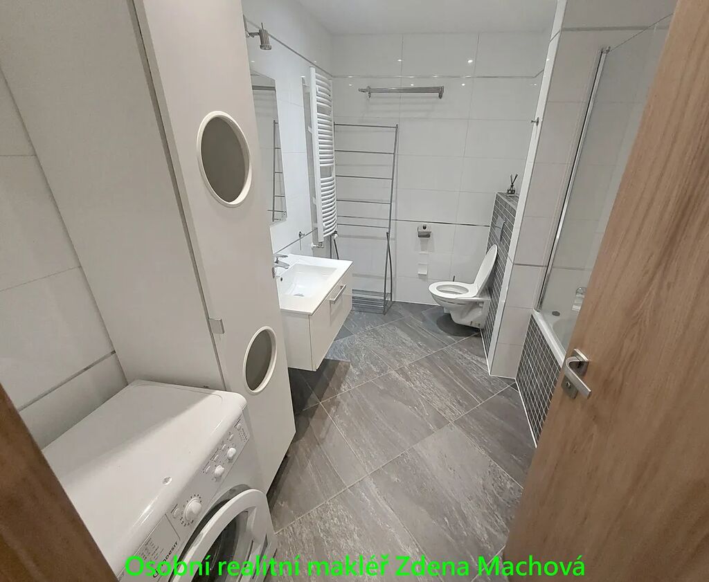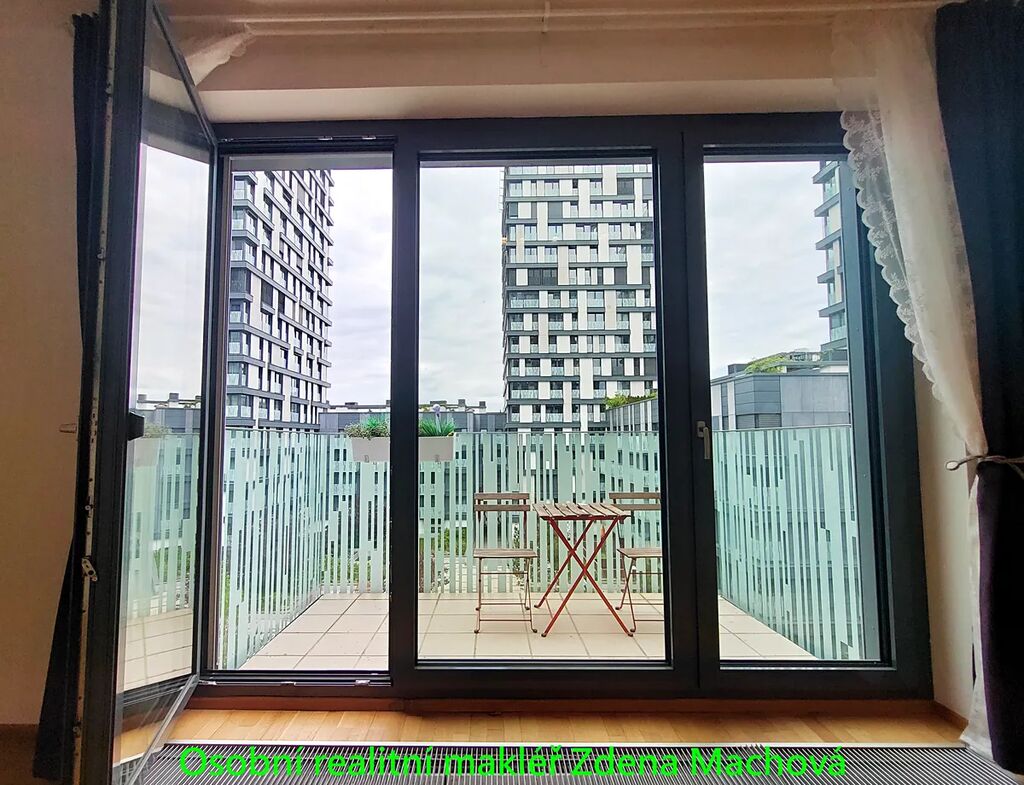 1KK s balkonem je o celkové ploše 40,7 m² (36 m² byt + 4,7 m² balkon) se nachází v 5. patře domu s výtahem. Dispozice bytu je praktická a maximálně využívá nabízený prostor. Obývací pokoj je propojen s kuchyňským koutem, kuch.linka se spotřebiči (lednice, myčka mikrovlnná trouba). Vchod na balkon se zahradním nábytkem, velkým francouzským oknem a výhled do klidného, upraveného vnitrobloku plného zeleně. Velká koupelna s vanou a skleněnou zástěnou, k dispozici i pračka. V předsíni šatní skříň a botník. Podlahová krytina dřevěná plovoucí a dlažba. Bezpečnostní vstupní dveře, francouzská okna s trojskly. K bytu a v ceně nájmu náleží sklep o velikosti 3,4 m², ideální pro uložení osobních věcí nebo sportovního vybavení.