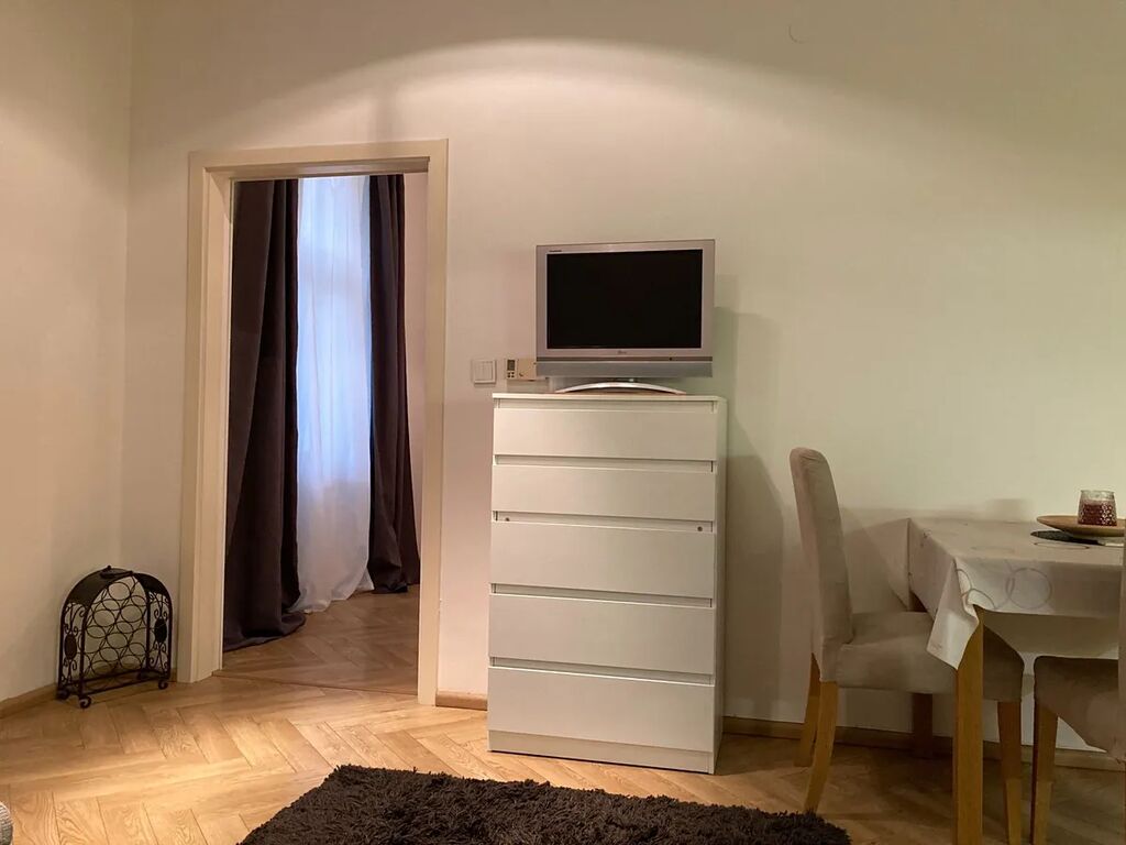do klidného vnitro-bloku. Poplatky v bytě cca 2.500,–Kč + el. energie (cca