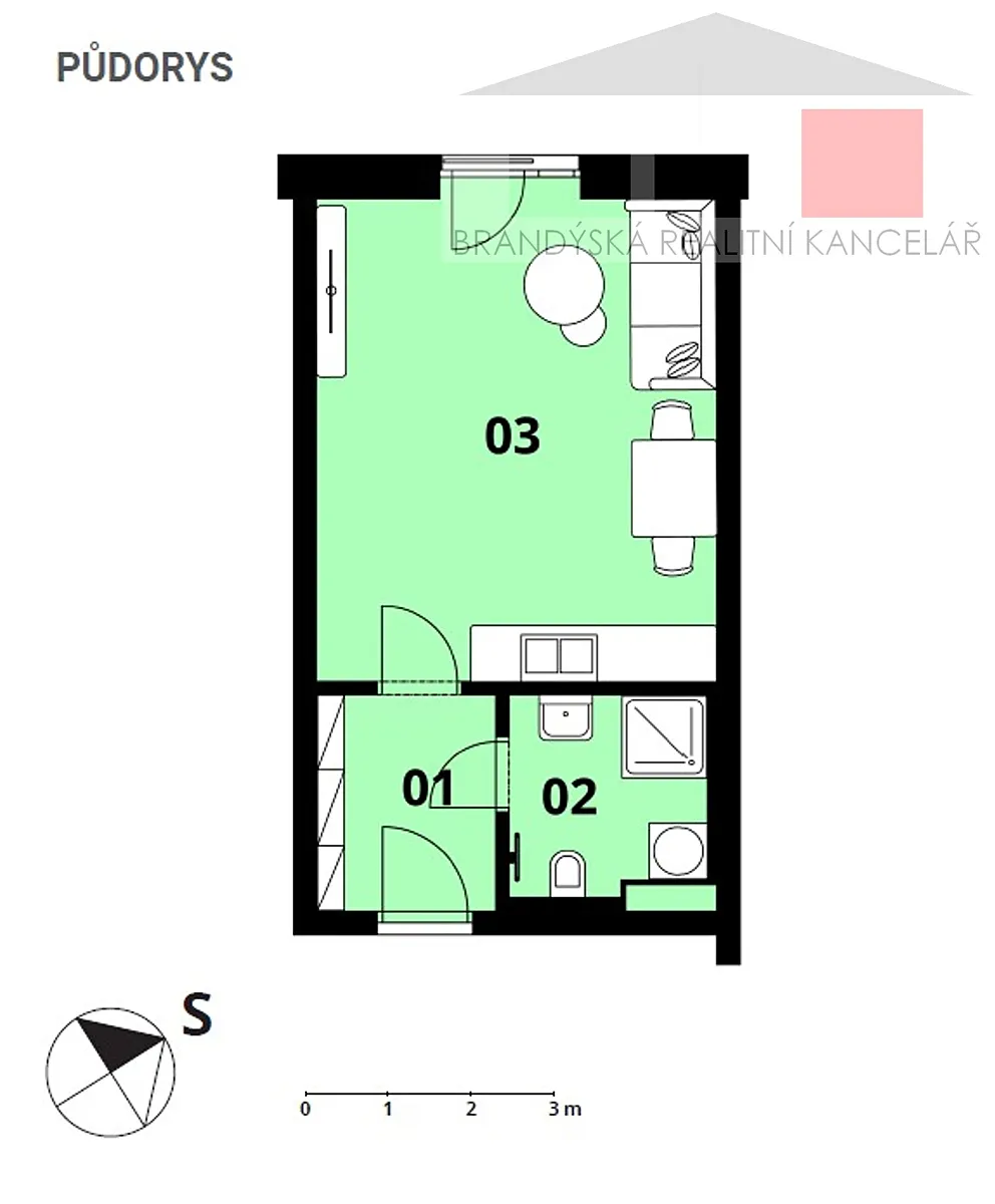 Nabízíme pronájem bytu 1+kk (32m2) ve 2.patře (3.NP) bytového domu z roku 2024 v lokalitě Mýtka, Stará Boleslav. Byt se sestává z obývacího pokoje s kuchyňským koutem (22,0m2), chodby (4,5m2), koupelna s WC (4,4m2), dále k bytu náleží sklepní kóje a garážové stání v suterénu domu. Kuchyňská linka je vybavena vestavěnými spotřebiči (elektrická varná deska, trouba, digestoř a lednice), ostatní zařízení na fotografiích je současné nájemnice s tím, že některé je možné odkoupit. Orientace bytu je na jiho-východ. Měsíční poplatky včetně garážového stání činí 6.245,-Kč + elektřina 730,-Kč. Vratná kauce (jistota) 20.000,-Kč, provize RK ve výši jednoho měsíčního nájmu; při podpisu nájemní smlouvy je nutné zaplatit celkem 51.000,-Kč. PENB „C“ – 91kWh/(m2*rok) dle vyhlášky č. 264/2020 Sb. Žádaná lokalita v blízkosti přírody s dobrou občanskou vybaveností, dojezdová vzdálenost do Prahy ČM cca 20 min. Byt bude volný od 01.12.2025.