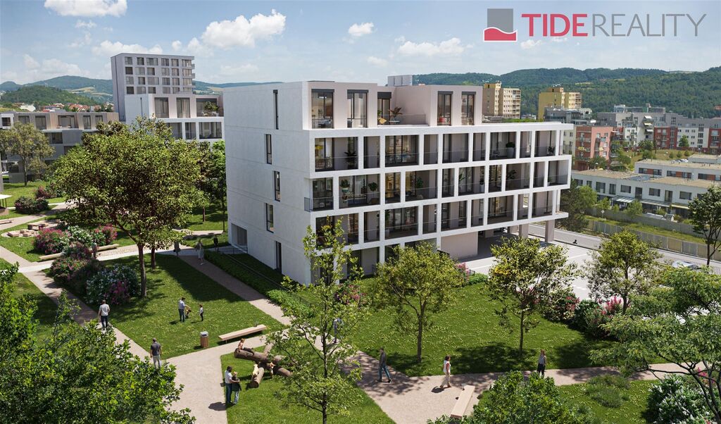 Tento byt 3+kk s východní orientací o podlahové ploše 83,3m2 a s dvěma balkony 3,8m2 + 3,8m2 se nachází ve čtvrtém podlaží nad úrovní terénu a má na výběr až 2 parkovací stání, která nejsou zahrnuta v ceně. Můžete si vybírat i mezi dalšími byty 1+kk až 5+kk, vždy s balkonem, lodžií, terasou nebo předzahrádkou.