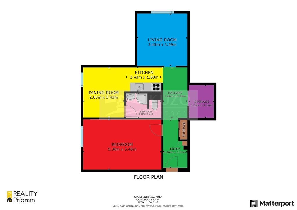 Praktická dispozice: Dvě neprůchodní ložnice nabídnou dostatek soukromí, zatímco obývací pokoj s kuchyňským koutem je ideálním místem pro společný čas s rodinou a přáteli.