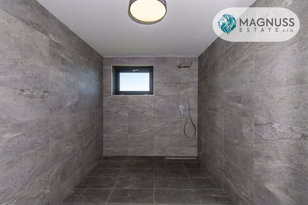 Dům je orientován na východ a navržen tak, aby komfortně sloužil dvěma samostatným apartmánům, každý o podlahové ploše 98 m², které mají společné zázemí v přízemí. V 1. nadzemním podlaží se nachází prostorná společenská místnost, sauna a technické zázemí. Celý prostor je proveden ve světlých tónech a přírodním stylu, který navazuje na okolní krajinu a působí velmi příjemně.
