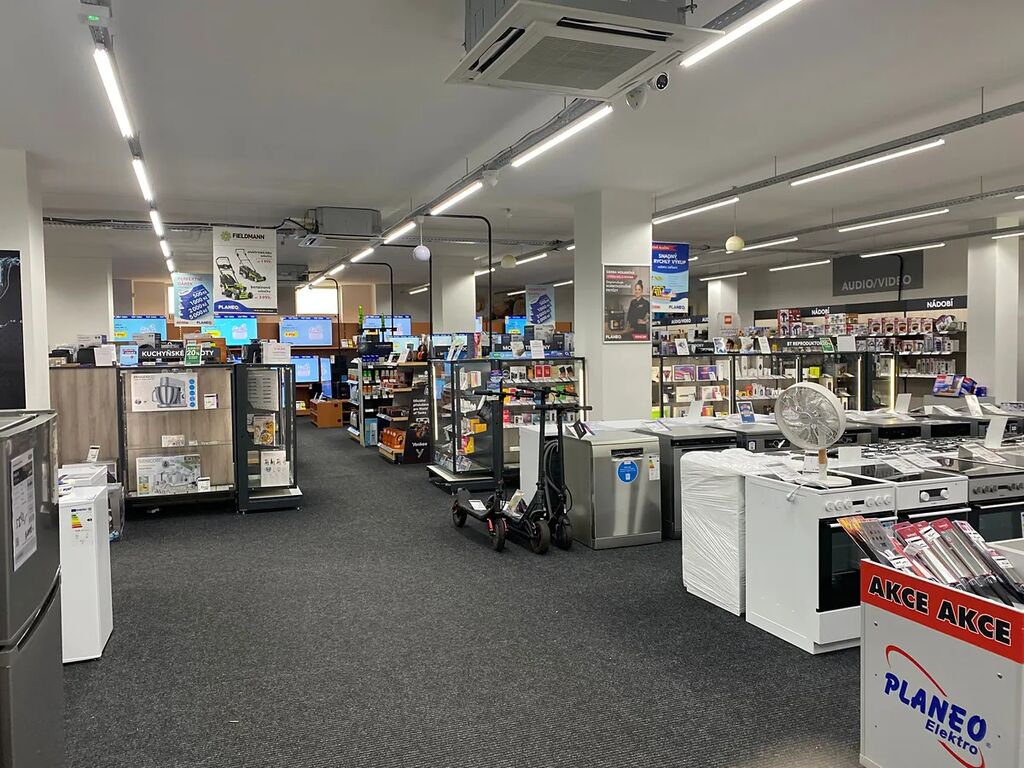 vybaven samostatnou klimatizací a vlastním měřidlem na elektrickou energii. Lze uzavřít svinovací mechanickou roletou. Přístup má přímo od eskalátorů. Momentálně je pronajatý - prodejna Planeo - bude volný od nového roku 2026. Bližší informace podá pan Marhoun - tel.: 739 323 689.