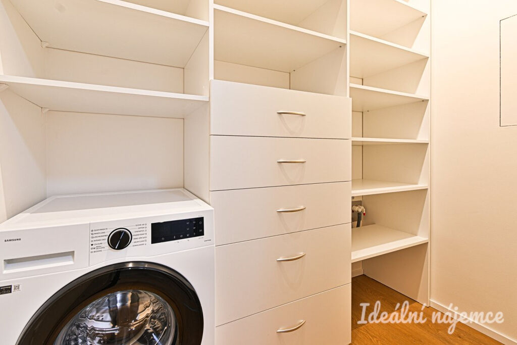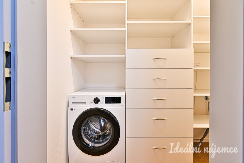 Byt se nabízí vybavený dle fotografií. Kuchyně je vybavena vestavěnými spotřebiči – troubou, varnou deskou, digestoří, lednicí a myčkou. V koupelně je sprchový kout, umyvadlo, toaleta. Výhodou je praktická komora/ šatna s pračkou.