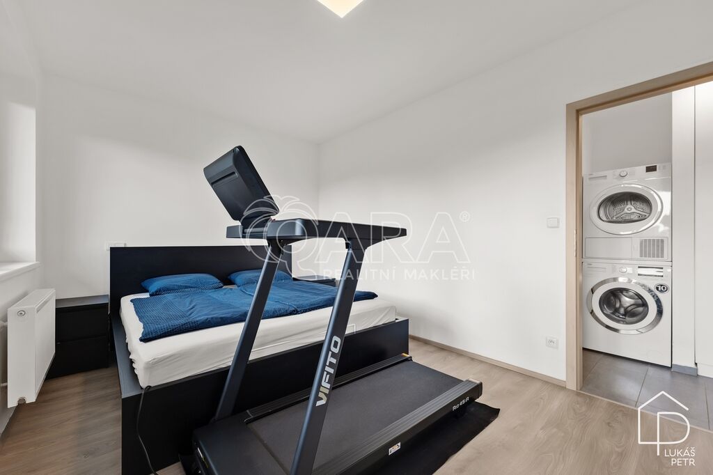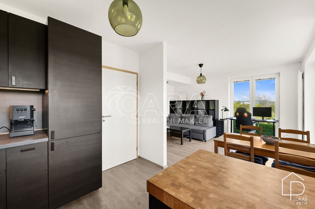 Dispozice dává smysl – obývací pokoj s kuchyňským koutem jako hlavní prostor bytu, samostatná ložnice a koupelna se sprchovým koutem a WC. Kuchyňská linka Ikea se spotřebiči, plovoucí podlahy, plastová okna. Vytápění je řešeno centrálně z domovní plynové kotelny, energetická třída B.
