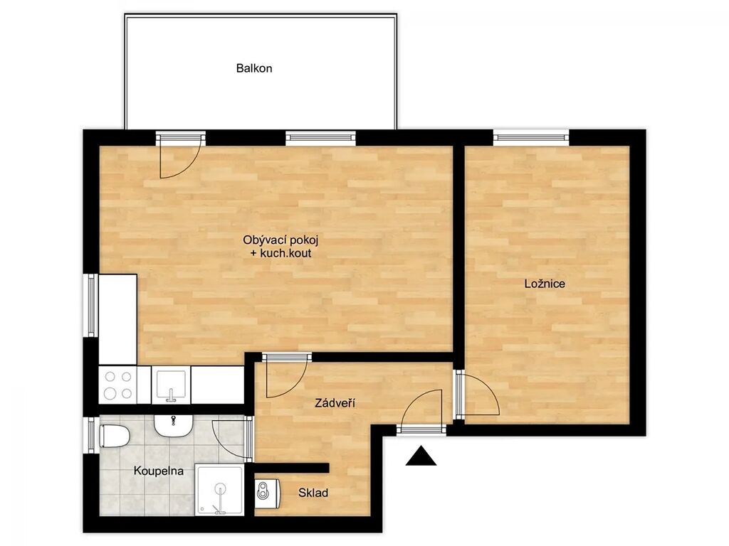 posezení nebo malou zahrádku v truhlících. K bytu patří i skladovací kóje - 3,6 m2, v