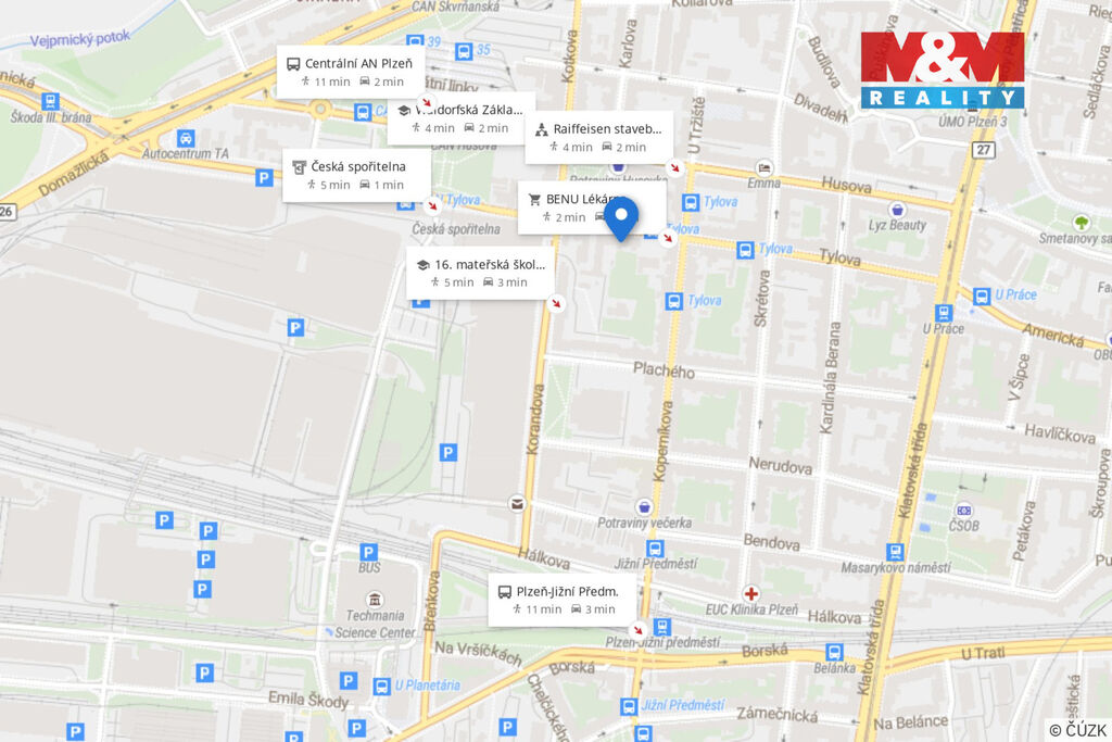 Byt se nachází ve 2. patře cihlového domu v atraktivní lokalitě Plzeň – Jižní Předměstí, ul. Tylova, jen pár minut chůze od centra města.