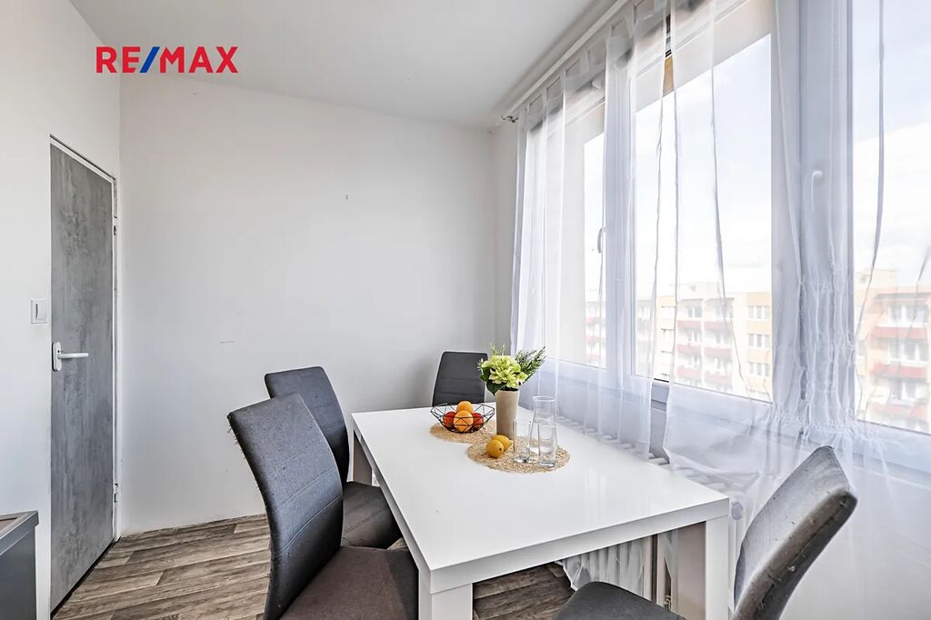 Byt se nachází v osmém patře domu s výtahem. Díky tomu si užijete krásný výhled, spoustu světla a klidné bydlení – nad vámi už totiž nikdo další nebude. K dispozici je balkon, kde si vychutnáte chvíle odpočinku, a praktický sklep pro uskladnění věcí.