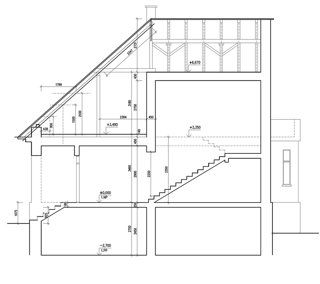 Rodinný dům je patrový a nabízí atypické dispozice s užitnou plochou přes 300 m². Dům je plně podsklepen. Sklep v současnosti skrývá i garážové stání.