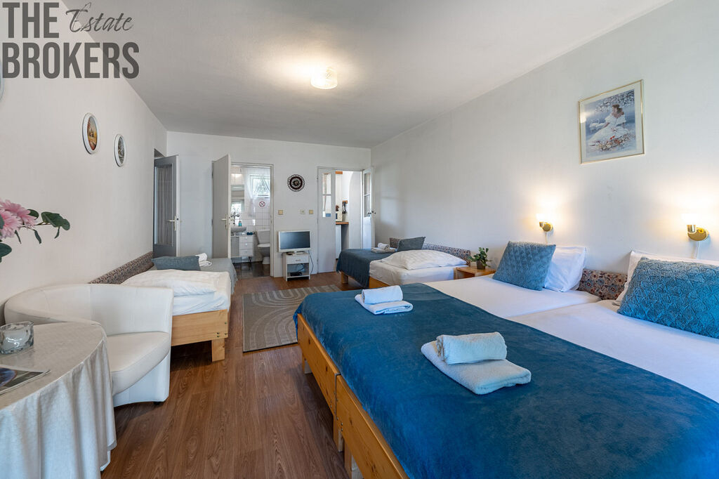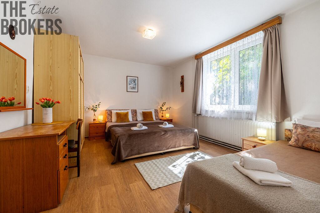 Dům je navržen tak, aby nabídl budoucím majitelům plnohodnotné bydlení v prvním patře, kde se snoubí pohodlí s atmosférou domova. K příjemným benefitům patří terasa o velikosti 28 m², která vybízí k posezení s rodinou a přáteli. Přízemí domu je přizpůsobeno k provozu krátkodobých pronájmů apartmánového typu. Každý apartmán má svou koupelnu a toaletu, což zajišťuje soukromí a komfort pro hosty. Celková kapacita ubytování činí 16 lůžek, přičemž tato část domu je již využívána a k prodeji bude předán i seznam stálé klientely. Nový majitel tak může okamžitě navázat na zavedený provoz.