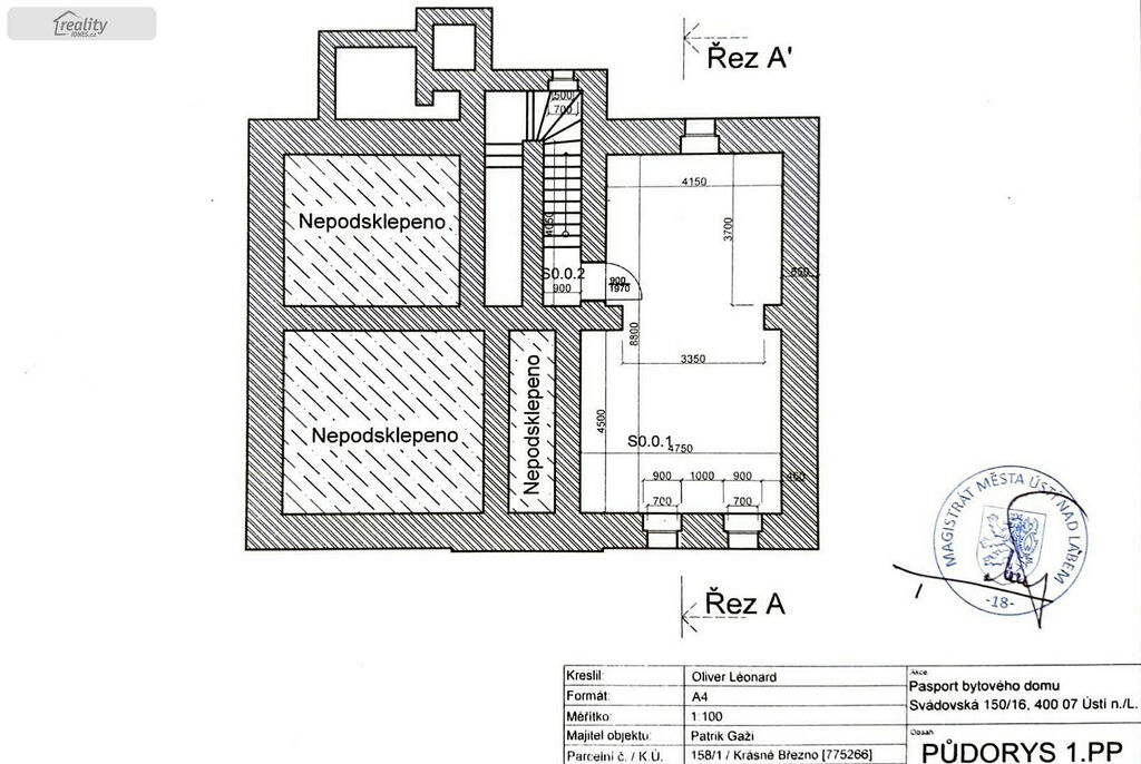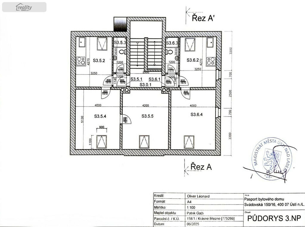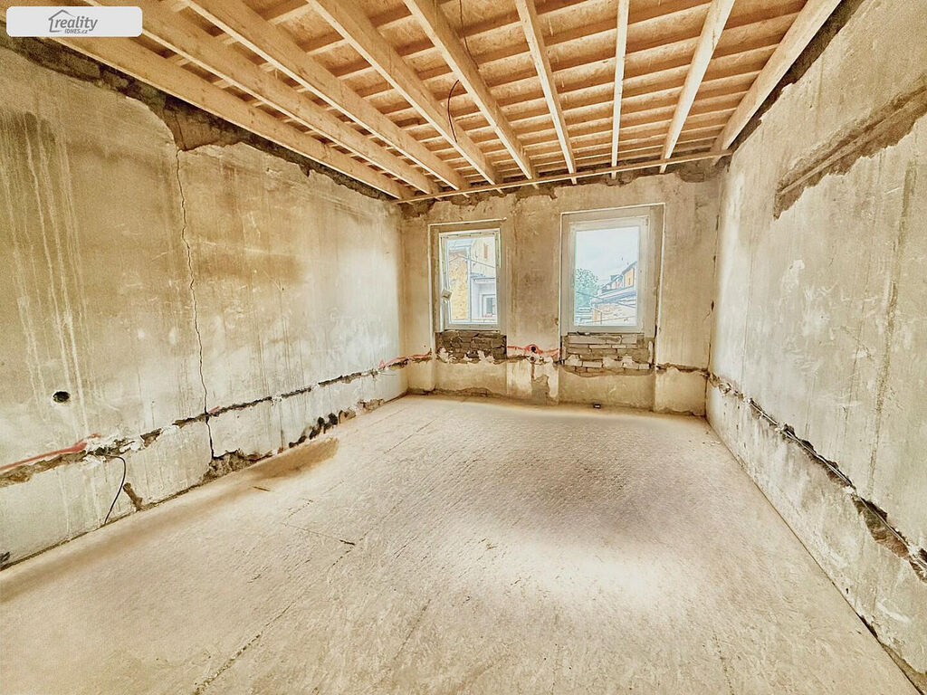 Zatím je hotová nová střecha s krovy (krytina plech), stropy, podlahy, trámy, rozvod elektřiny, vody, nové okna. Součástí je pasport bytového domu.