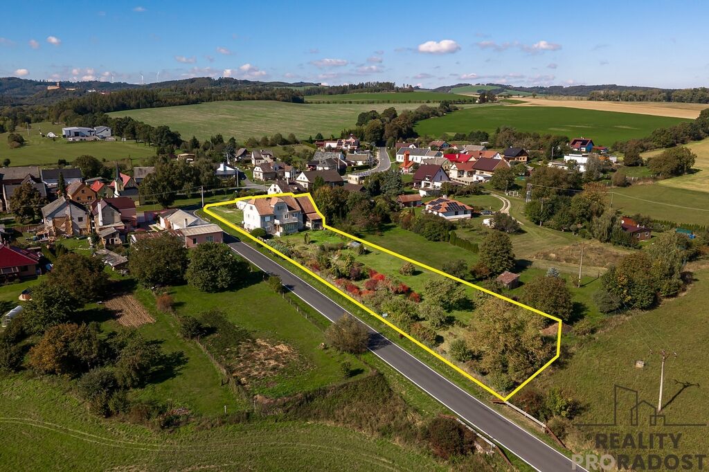 Dům leží na rovinatém pozemku o celkové výměře 3.173 m2. Na přední zahradě jsou postaveny dvě garáže, tyto garáže jsou částečně podsklepené. Je zde možnost parkování pro více aut. Zadní zahrada je využívána k rekreaci, pěstování zeleniny, květin a ovocných stromů. Na dům navazuje prostorná stodola.