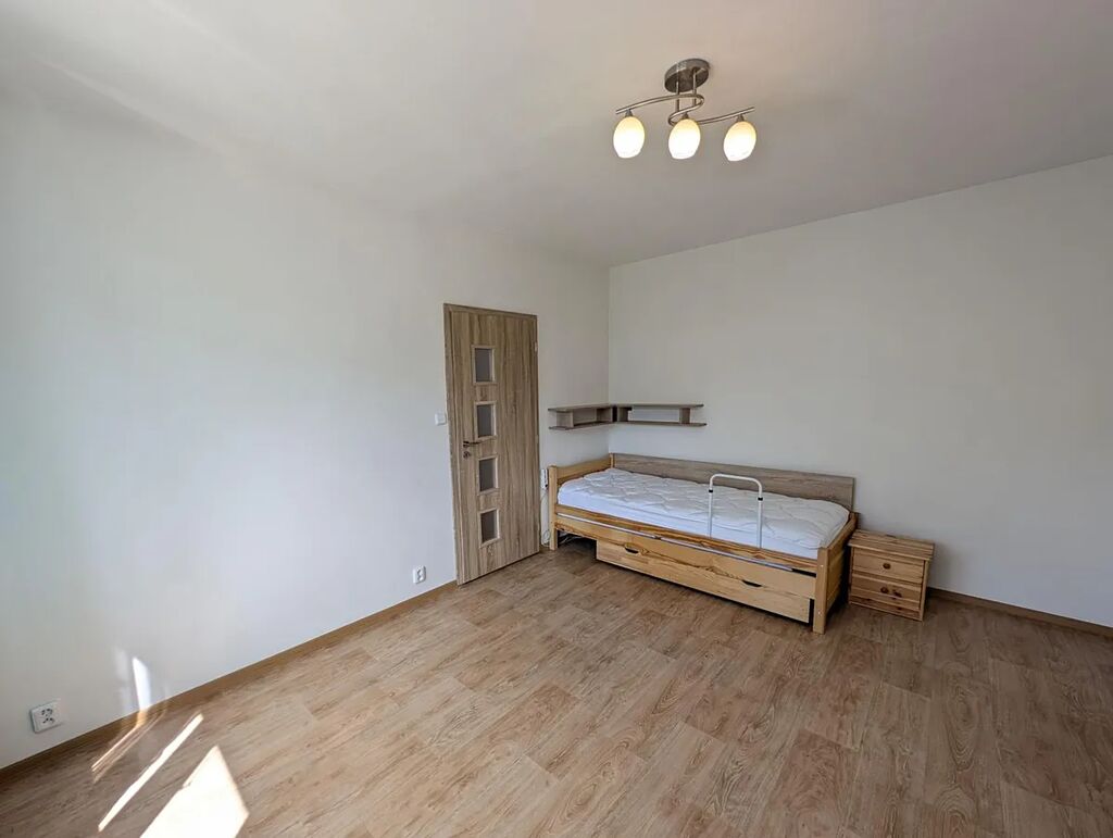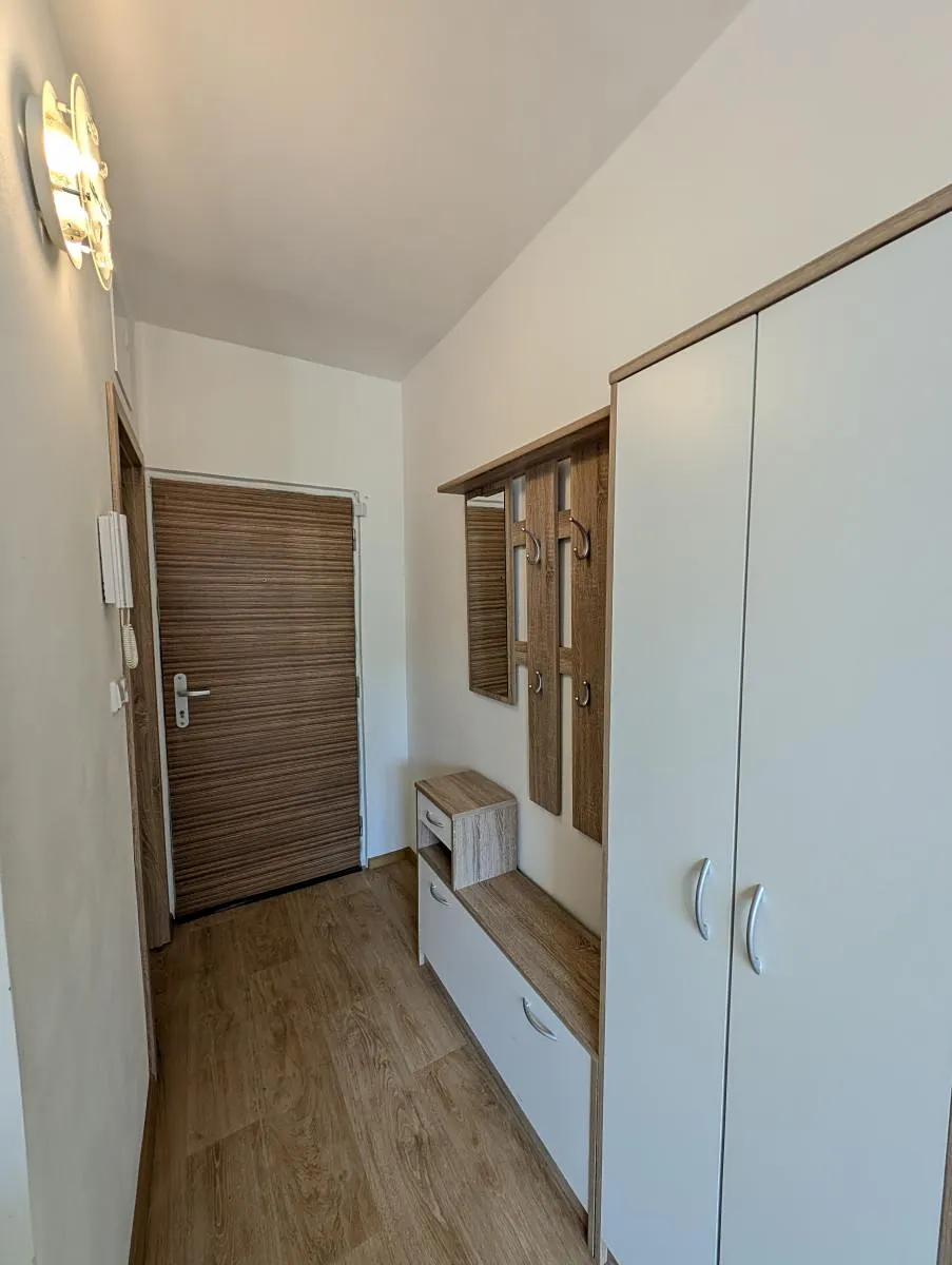 Byt prošel rekonstrukcí a nabízí čisté a klidné bydlení s výhledem do zeleně. Interiér tvoří obytný prostor s kuchyňským koutem, samostatná ložnice, koupelna s toaletou a předsíň. Kuchyňská linka je vybavena sklokeramickou deskou, troubou, mikrovlnnou troubou, digestoří a lednicí. Byt se pronajímá částečně vybavený součástí je postel a skříň.