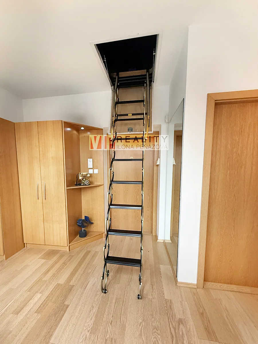 Z předsíně je přístup i do vlastního půdního prostoru, který se rozkládá nad celým bytem a nabízí obrovský potenciál.
