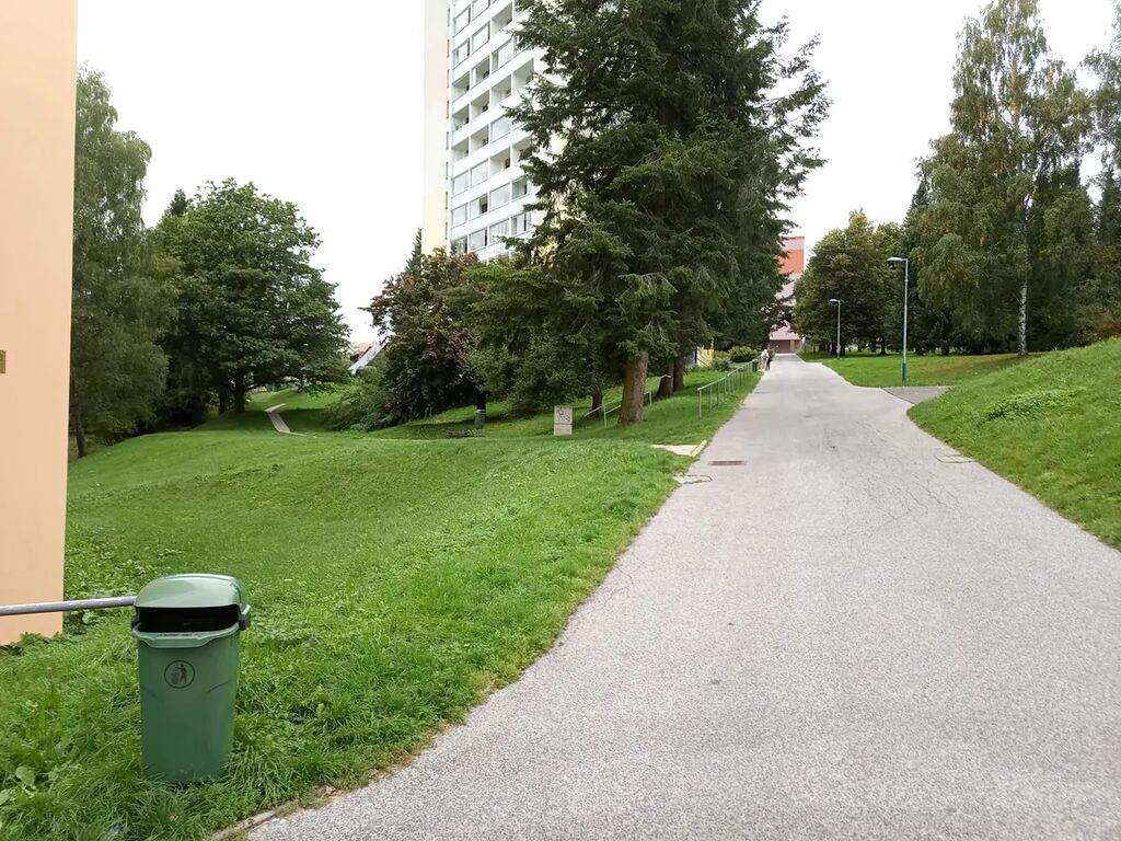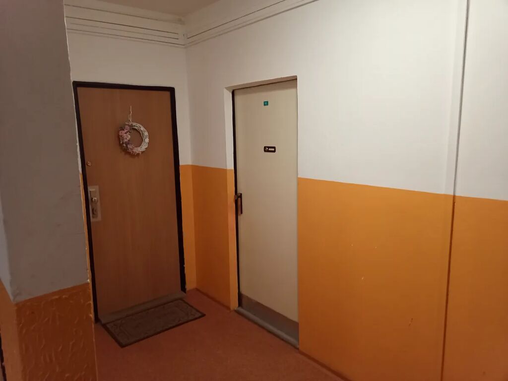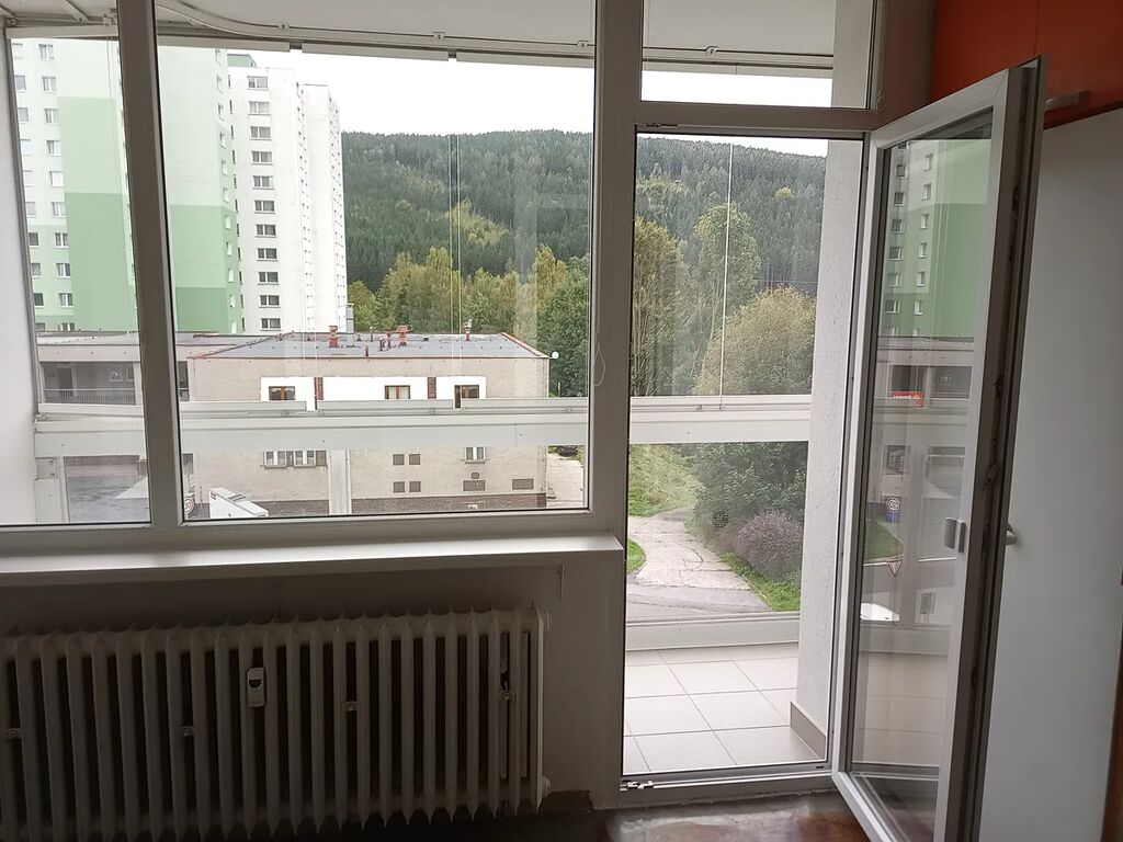 Jedná se tak o velmi prostorný byt 1+1 s širokou vstupní šatnou i chodbou před soc.zařízením. Obývací pokoj i kuchyň mají samostatnou zasklenou lodžii s výhledem do krajiny. Byt se skládá ze vstupní chodby (šatny) se vstupem nalevo do samostatné místnosti bez oken s možností využití jako sklad či pracovna, proti vstupu je umístěný obývací pokoj s průchodem do kuchyně propojenou přes chodbu se šatnou do vstupní části. Z této chodby je vstup do koupelny s WC po rekonstrukci včetně ker.obkladů a rozvody instalací i do kuchyně. Na chodbě u výtahů je společná komora pro další tři byty na patře a v suterénu je samostatná sklepní kóje. Objekt domu je dvanáctipodlažní s bezbariérovým vstupem do přízemí a samostatným vstupem do suterénu přes bet.rampu u parkoviště pod domem s navazujícími dvěma samostatnými výtahovými šachtami. Celý dům prošel rekonstrukcí s novým zateplením kontaktní fasádou, výměnou všech oken za plastové s izolačním sklem, nové rozvody ovládání vstupních dveří včetně zvonků, novými výtahy, kamerovým systémem zabezpečení domu… .