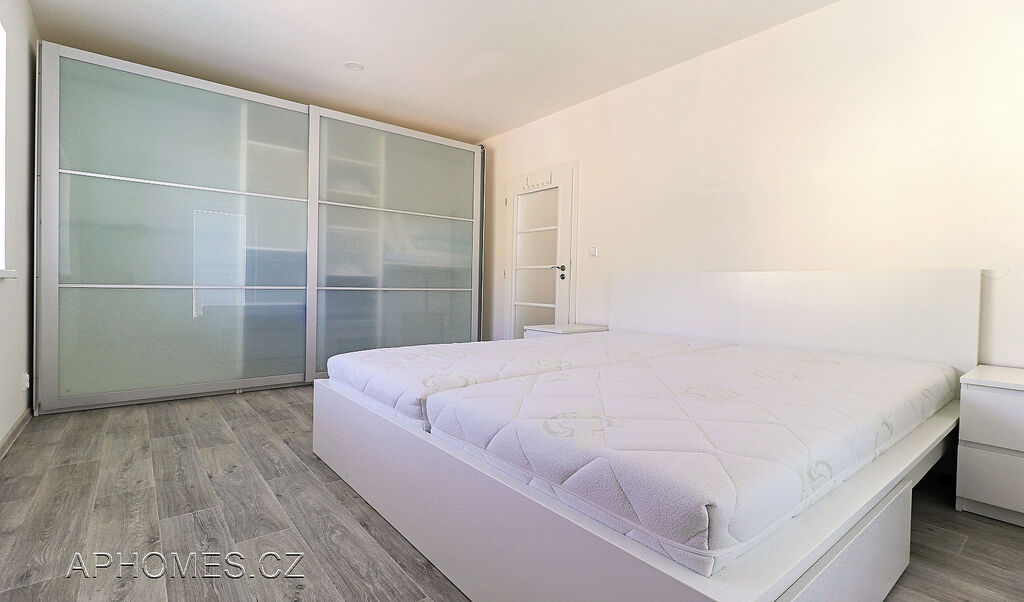 Obývací pokoj je vybaven sedací soupravou, jídelním stolem a židlemi, držákem na LCD TV pro uchycení na zeď, v ložnici je dvoulůžko, noční stolky a komoda. Šatní skříně jsou nyní umístěné v chodbě. Vybavení je možné i částečně upravit dle dohody.