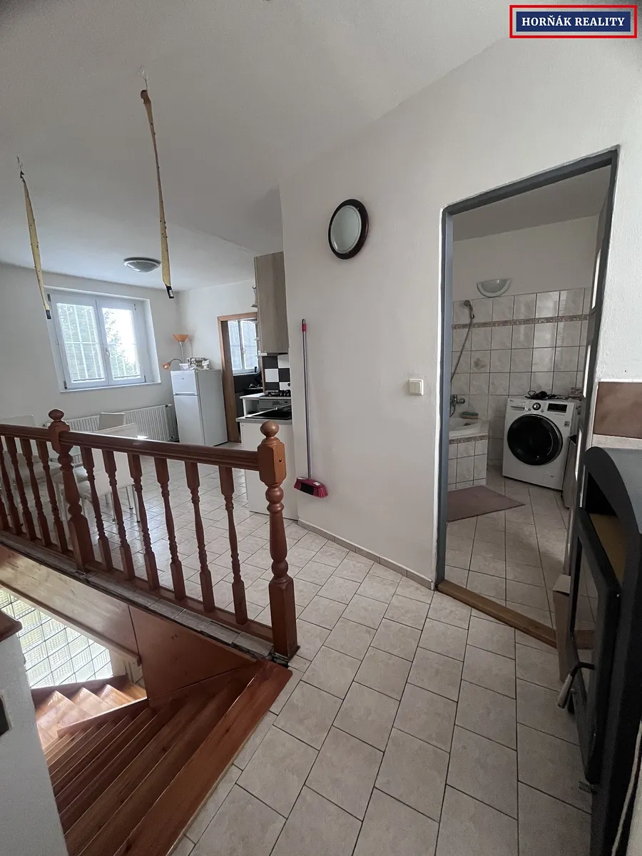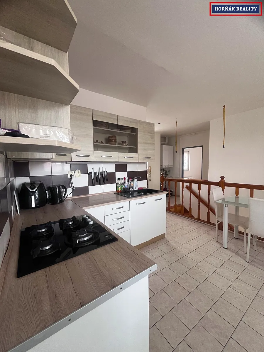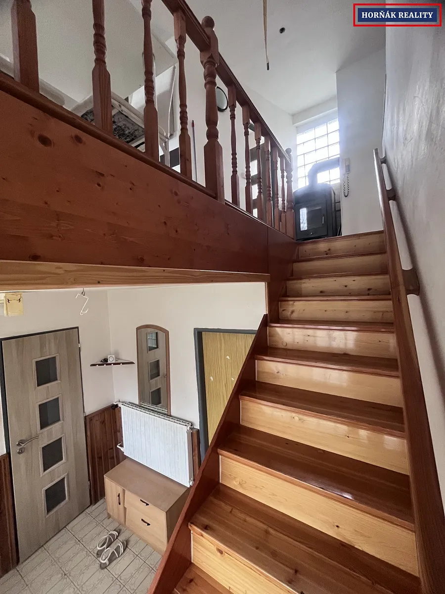Dispozice bytu: Vstupní chodba a WC, schody nahoru ,kde se nacházejí dva samostatné pokoje, koupelna, kuchyně a obývací pokoj, ze kterého je vstup na balkón.