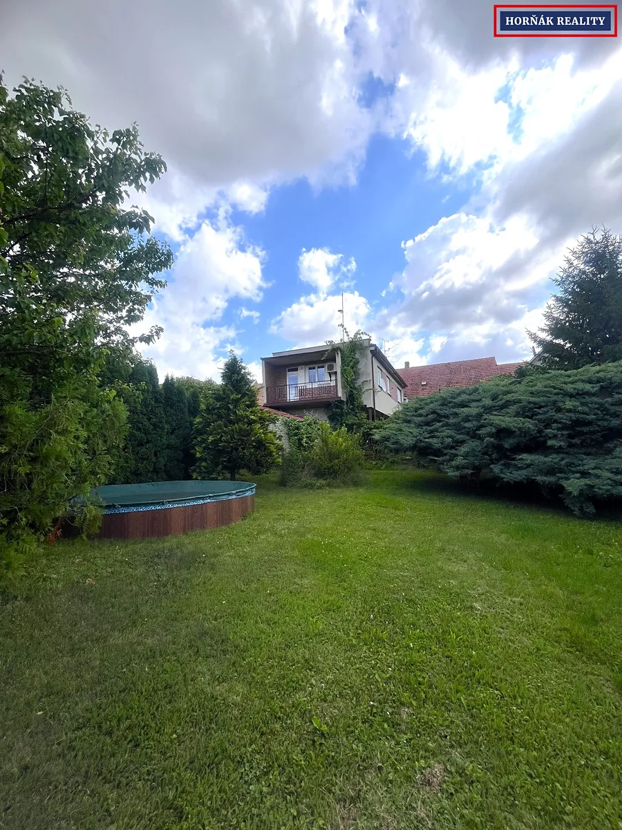 Dvůr a zahrada s bazénem jsou společnými prostory s druhou bytovou jednotkou. Každá má svůj vlastní vchod.
