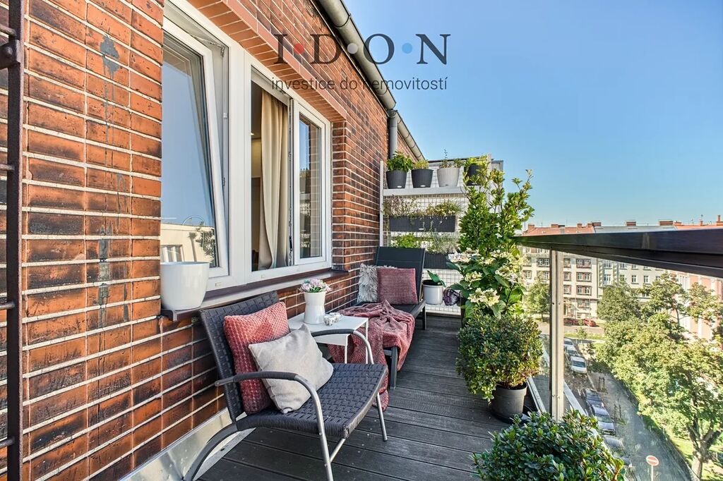 Dominantou obývacího prostoru jsou stylová krbová kamna, která vytvářejí útulnou atmosféru v zimních měsících. Komfort bydlení zajišťuje také podlahové topení v celém bytě. K bytu náleží prostorná terasa, ideální pro relaxaci. Šesté nadzemní podlaží zajišťuje nádherný výhled, osobní výtah je samozřejmostí.