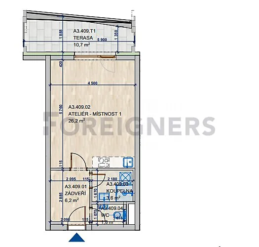Pak vás zaujme tento krásný byt 1+kk (39,2 m²) s terasou 10,7 m², umístěný ve 4. podlaží budovy A3 projektu Allrisk Meridiem – té, která je nejblíže centru Brna.