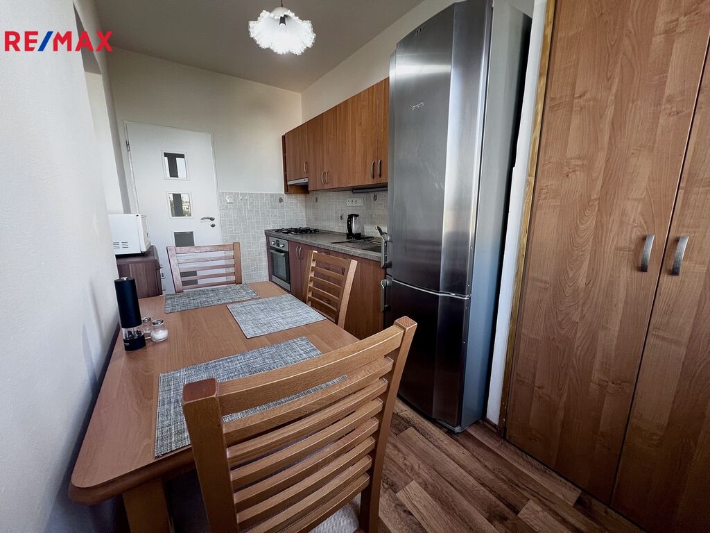 Byt se nachází v bytovém domě v klidné části města s atmosférou přírody, přesto v dosahu centra – autem za 8 minut.