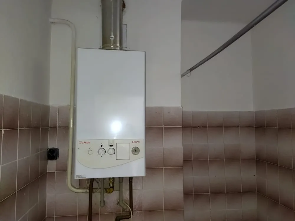 Vytápění a ohřev vody ústřední pomocí plynového kotle.