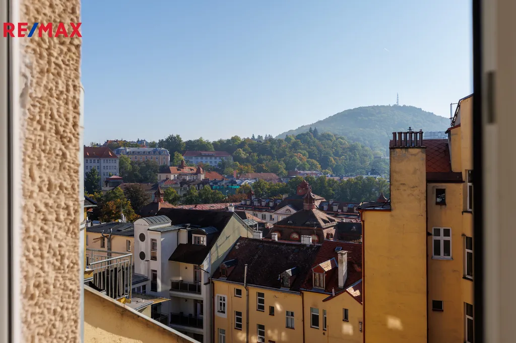 Z oken i balkonu se otevírá krásný výhled na Karlovy Vary, který dodává bytu jedinečnou atmosféru.