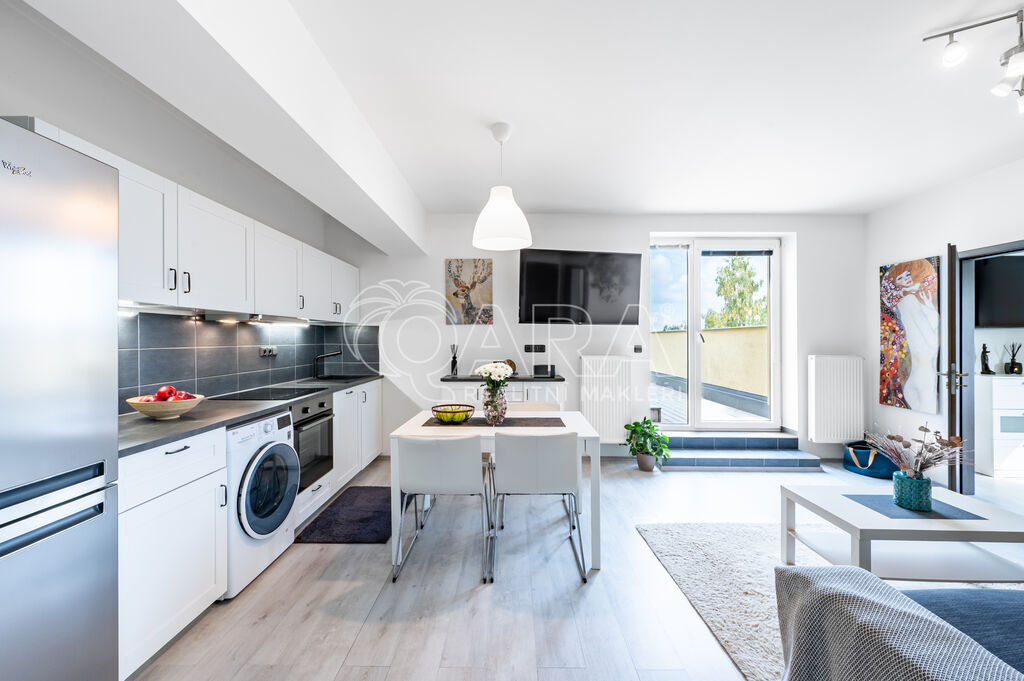 Hledáte moderní a útulné bydlení, kam se můžete rovnou nastěhovat? V Hořovicích, v klidné ulici U Školky, na vás čeká stylový byt 3+kk s výjimečně prostornou terasou s pergolou.