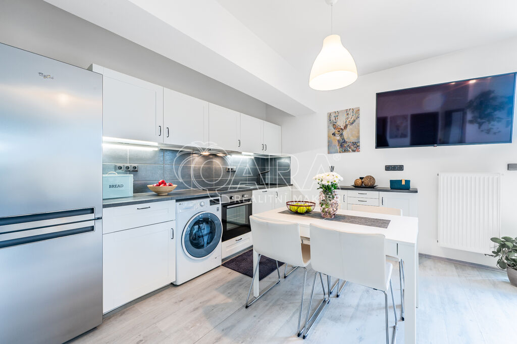 Bytová jednotka o užitné ploše 54 m² se nachází ve 4. patře cihlového domu z roku 2019 s výtahem, v energetické třídě B - velmi úsporná. Byt je kompletně a vkusně zařízený – připravený k okamžitému nastěhování.