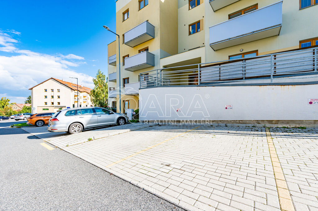 K bytu je možné dokoupit dvě parkovací stání přímo před domem, každé za 220.000 Kč.