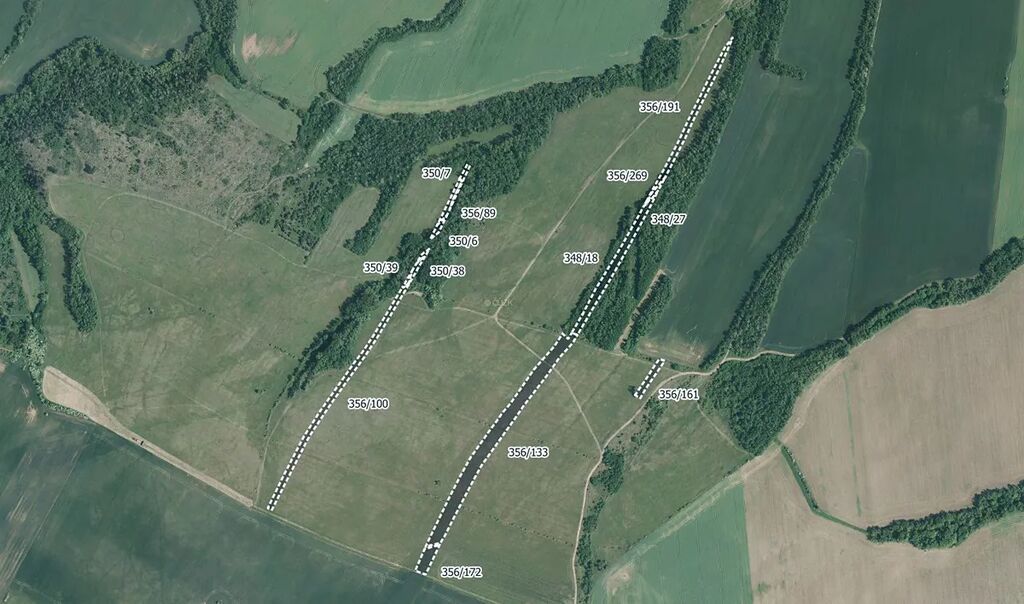 Předmětem prodeje je vlastnictví na celkem 14 parcelách zapsaných na LV 426, konkrétně čísla: 348/18, 348/27, 350/6, 350/7, 350/38, 350/39, 356/89, 356/100, 356/133, 356/161, 356/172, 356/191, 356/269 a 413/26.