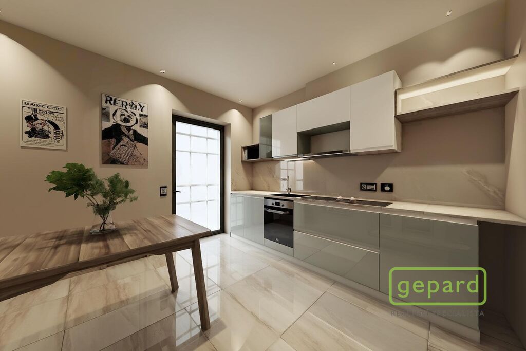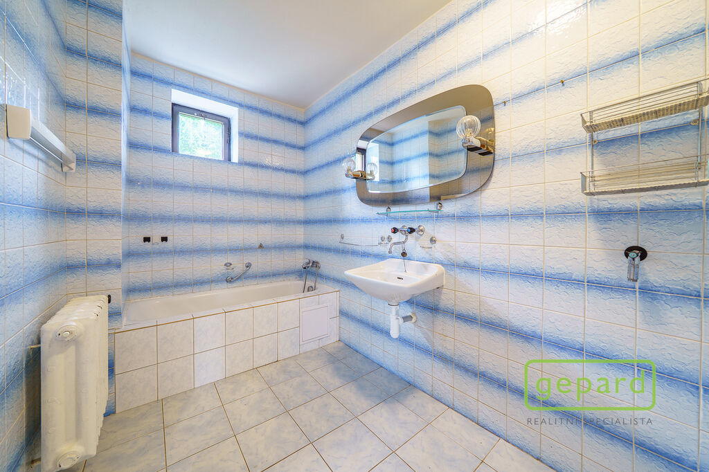 Přízemí domu má samostatný vchod ze zahrady. Najdete tu velkou garáž, byt 1+1 s koupelnou a technické zázemí (kotelna + dvě místnosti), které nabízí možnost přestavby na velkou bytovou jednotku.