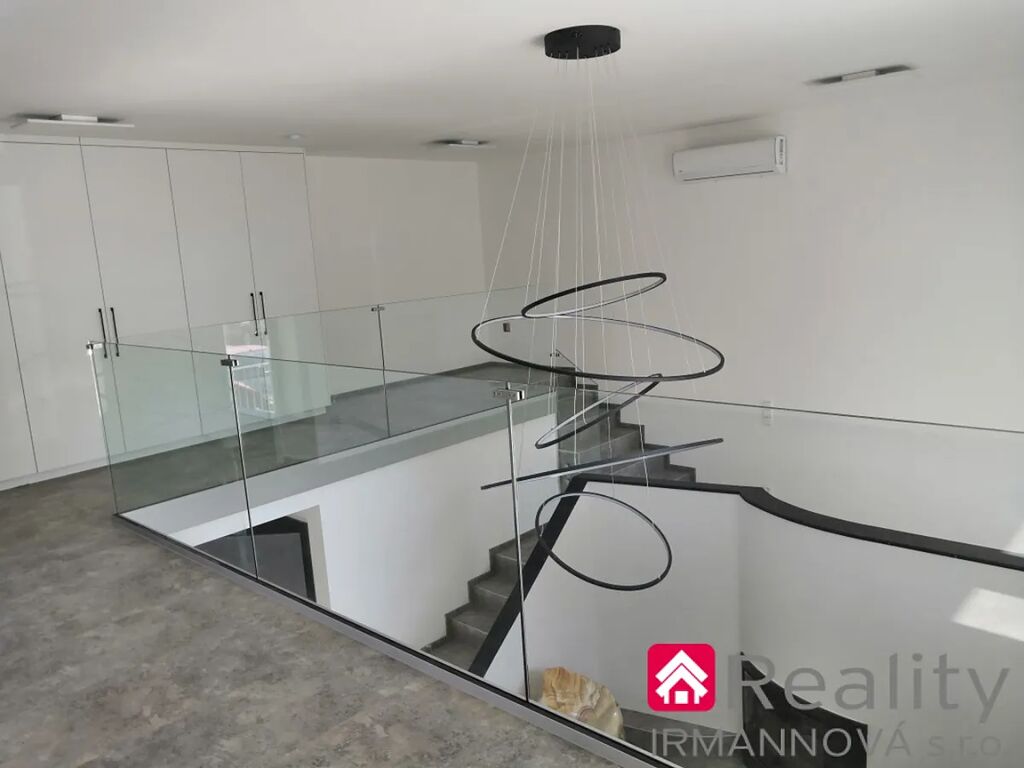 Nadstandardní vybavení nabízí zakázková kuchyňská linka včetně spotřebičů – vestavná trouba, indukční varná deska, vestavný odsavač par, americké lednice volně stojící, vestavná pračka, dřez a baterie, výsuvy pro šuplíky, příborník, výsuvný odpadkový set, led pásky. Veškeré osvětlení lze regulovat samostatnými ovladači. Celoskleněné zábradlí z tvrzeného dvojskla zajišťuje bezpečnou galerii. Objekt je vybaven klimatizací.