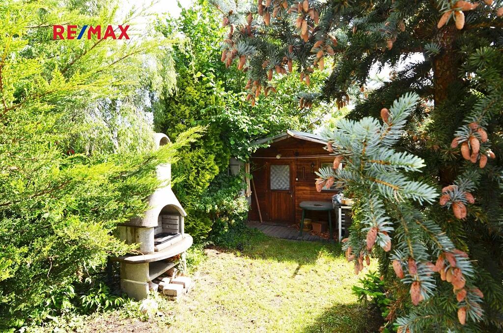 Dominantou tohoto domu je prostorný obývací pokoj s vybaveným kuchyňským koutem a vstupem do zahrady s altánem na nářadí apod.