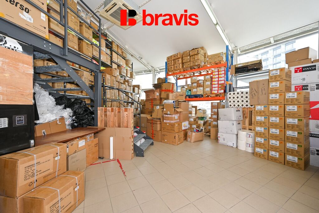 V přízemí se nachází prostorná prodejna/showroom s přímým vstupem z ulice, dále kuchyňka, skladovací prostory s vysokými stropy (až 5,5 m) a schodiště vedoucí do druhého podlaží.