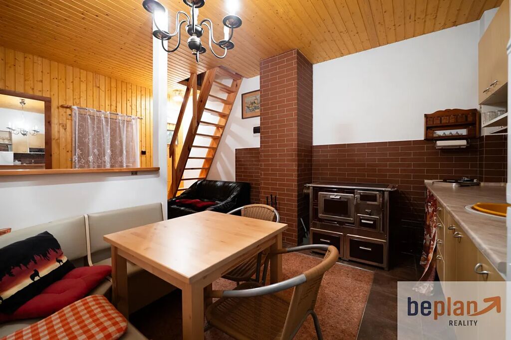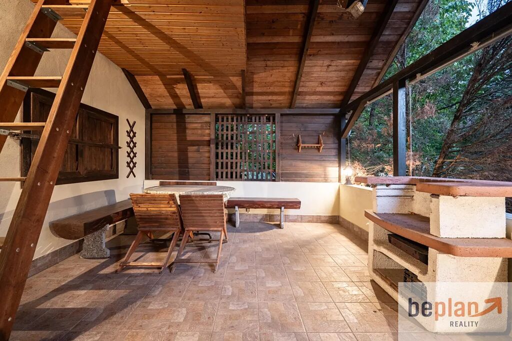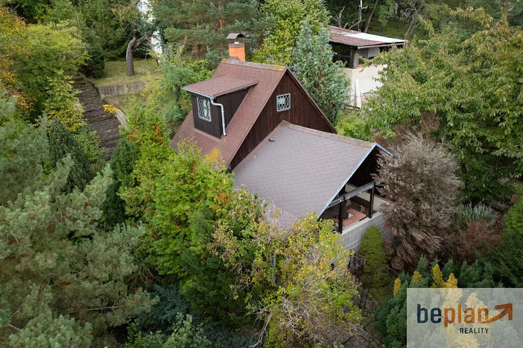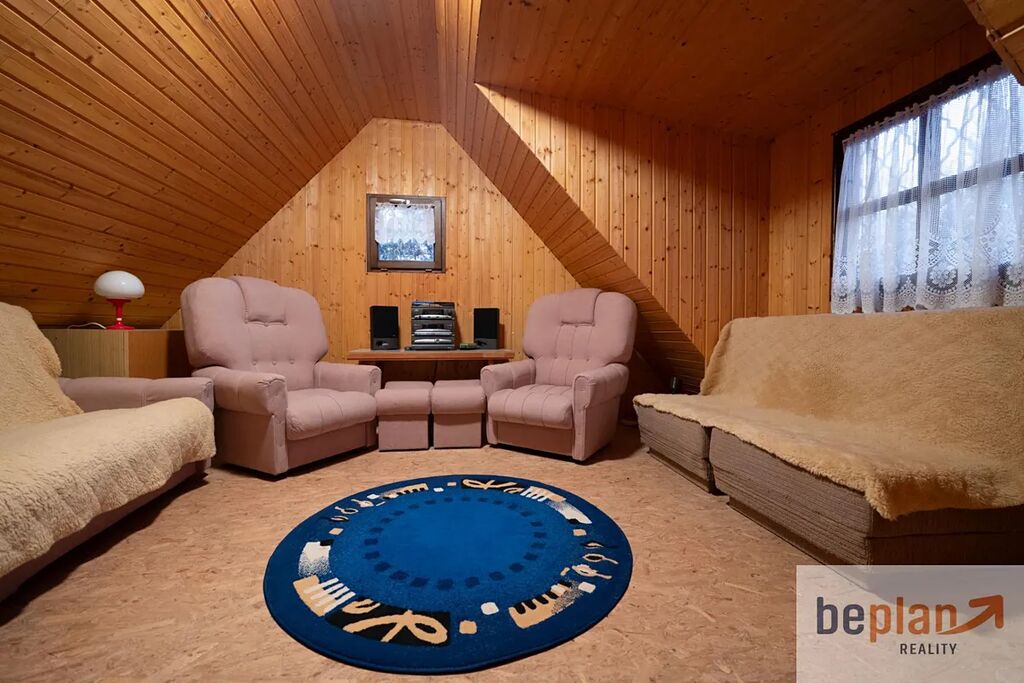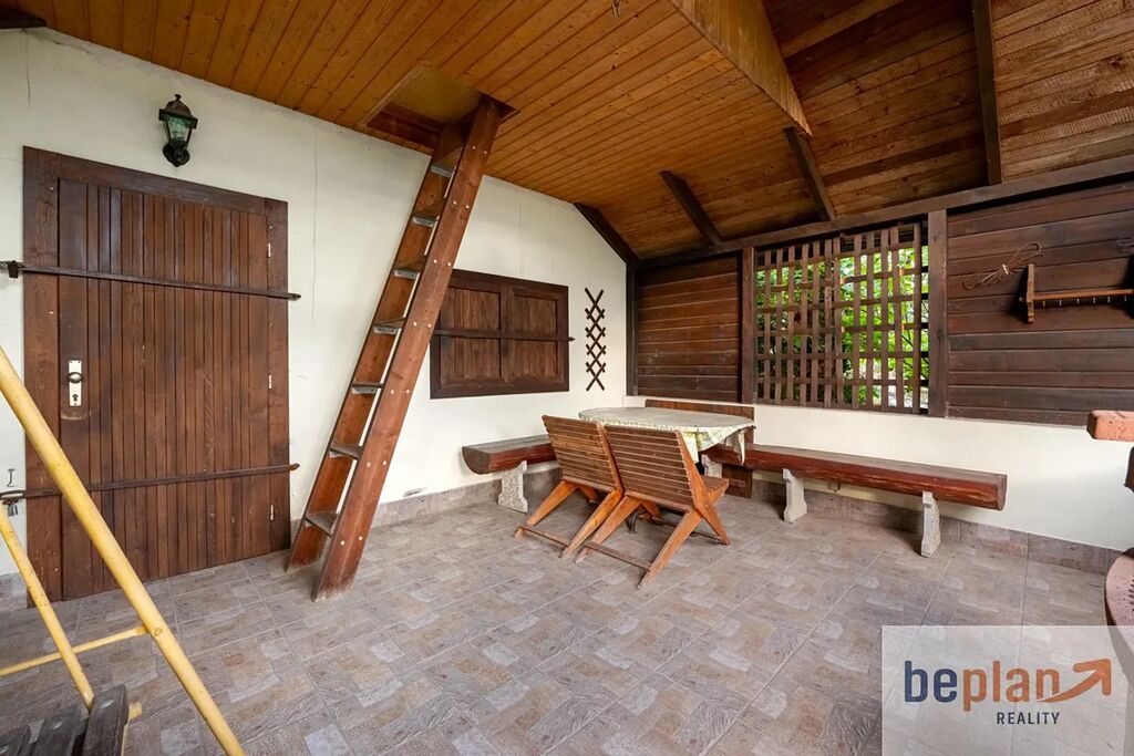 Na pozemku se nachází útulná chata ve velmi dobrém stavu, která nabízí kuchyň s jídelním koutem v přízemí a útulnou odpočinkovou zónu v podkroví.