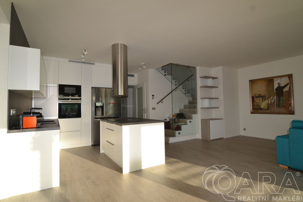 Nabízím k pronájmu atraktivní novostavbu rodinného dvojdomu 5+kk/T/G v lokalitě Praha 5 Stodůlky. Dům se nachází v kompletně nově vybudované vilové čtvrti se skvělou občanskou vybaveností a dostupností na metro Stodůlky. Dvoupodlažní rodinný dům s garáží a venkovní terasou je vhodný pro toho kdo hledá moderní bydlení. Dům se nachází na pozemku 292m2 a má plochu 170m2 + terasu 20m2. Prostorný obývací pokoj s kuchyní a vstupem na terasu je místem kde rádi budete trávit čas se svojí rodinou. V patře jsou dva dětské pokoje, ložnice s vlastní sociální zázemím a místností ve které je v současné době šatna. V domě jsou samozřejmostí venkovní žaluzie, rekuperace, podlahové topení, alarm, hliníková okna, tepelné čerpadlo. Cena pronájmu činí 55.000,- Kč měsíčně. Dodávka elektrické energie a plynu se přepisuje na nájemce, současně si nájemce platí i spotřebu vody a roční poplatek za odpad. Vratná kauce ve výši 2 měsíčních nájmů + provize RK. Přijďte se sami přesvědčit o kvalitách této nabídky, ráda Vám poskytnu více informací.