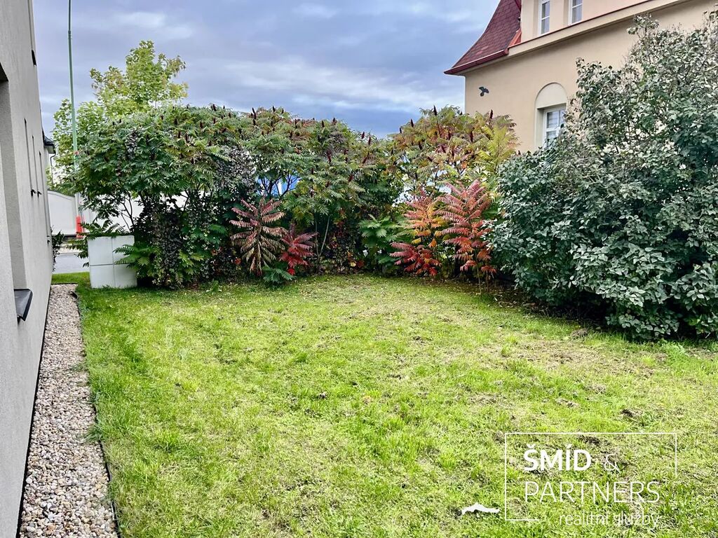 domu, dokončeného v roce 2022. K bytu náleží zahrádka o velikosti 46 m2, která je přístupná z obývacího pokoje.