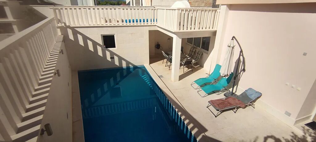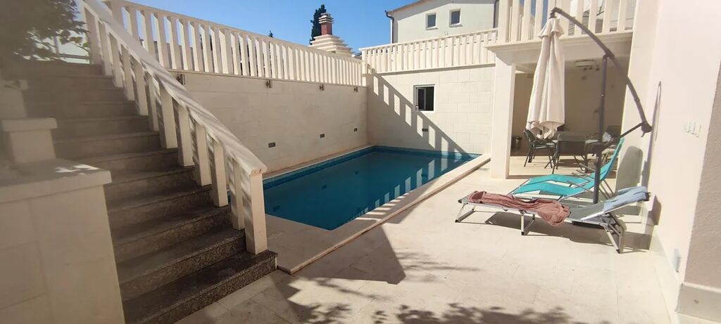 Obytná plocha 134 m2, pozemek 133 m2, 4 ložnice, 3 koupelny, 2 parkovací místa na vlastním pozemku, privátní bazén, vzdálenost od moře 125 m2.