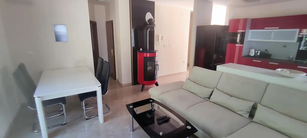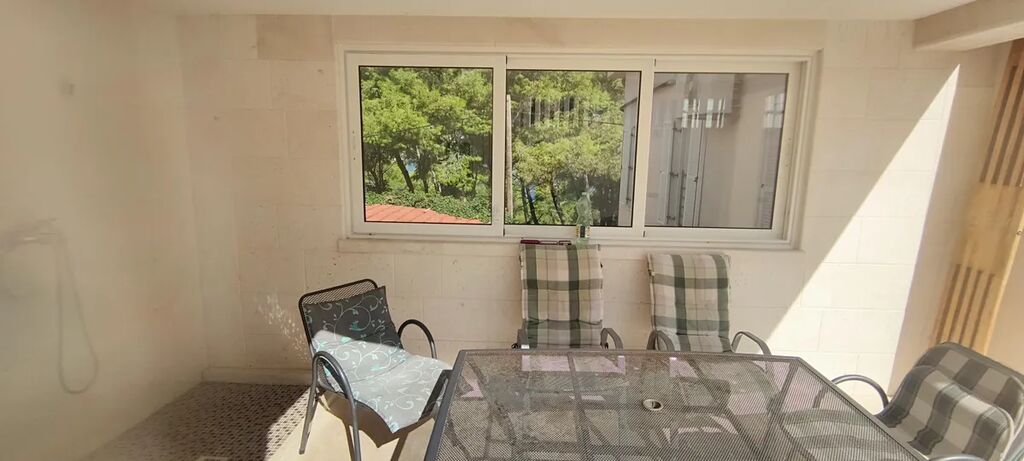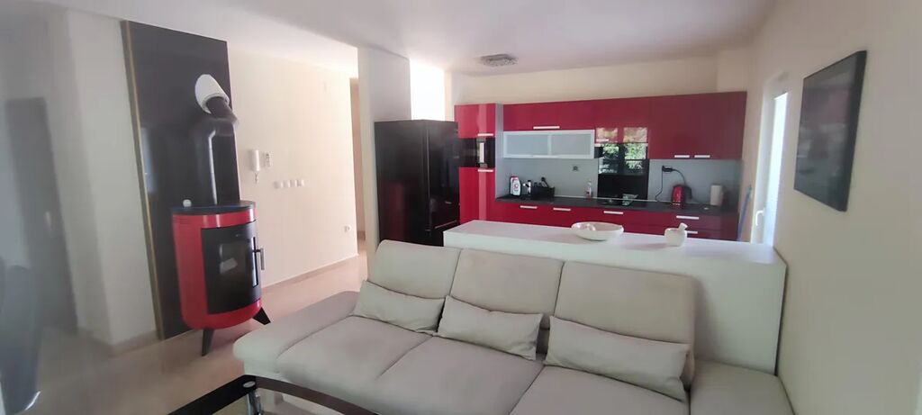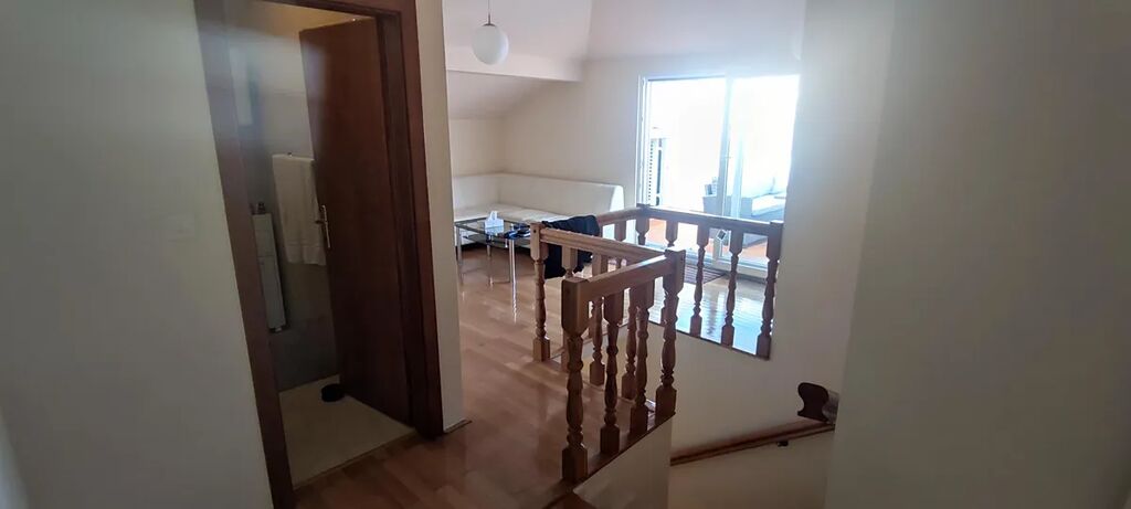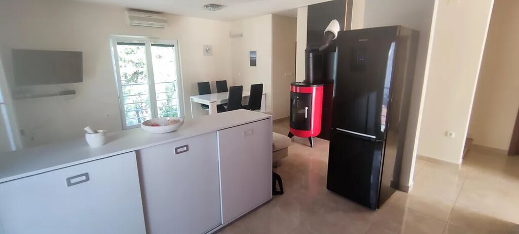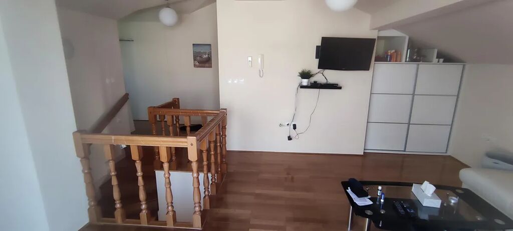 Nabízíme k prodeji nemovitost, která je něco mezi bytem a domem. Dvoupodlažní apartmán je umístěný v domě se 4 byty. Má samostatný vchod i vjezd na pozemek. Objekt byl postaven v roce 2008. V roce 2013 proběhla rekonstrukce - nová dlažba ve spodním patře, kompletní renovace venkovních prostor (kámen), výstavba bazénu, parkovacích míst, venkovní gril a všechny terasy. Dále došlo k rozšíření obytných místností v prvním patře, kde vznikla z půdního prostoru nová ložnice a skladový prostor. Na pozemku se nachází 3 parkovací místa, zahradní gril, horní terasa, ovocné stromy, dolní terasa, technická místnost, bazén 7 x 3,5 m. Vnitřní prostory jsou rozděleny do dvou pater. Ve spodním patře se nachází vstupní chodba, 3x ložnice, 2x koupelna, kuchyně s obývacím pokojem s krbovými kamny. V horním patře je obývací pokoj, koupelna, ložnice, terasa, skladové prostory pod střechou. Byt je kompletně vybavený, klimatizace v každém pokoji, 2x TV, lednice, přípojka k internetu, automatické dávkování chemie pro bazén, samostatné měření spotřeby elektrické energie.