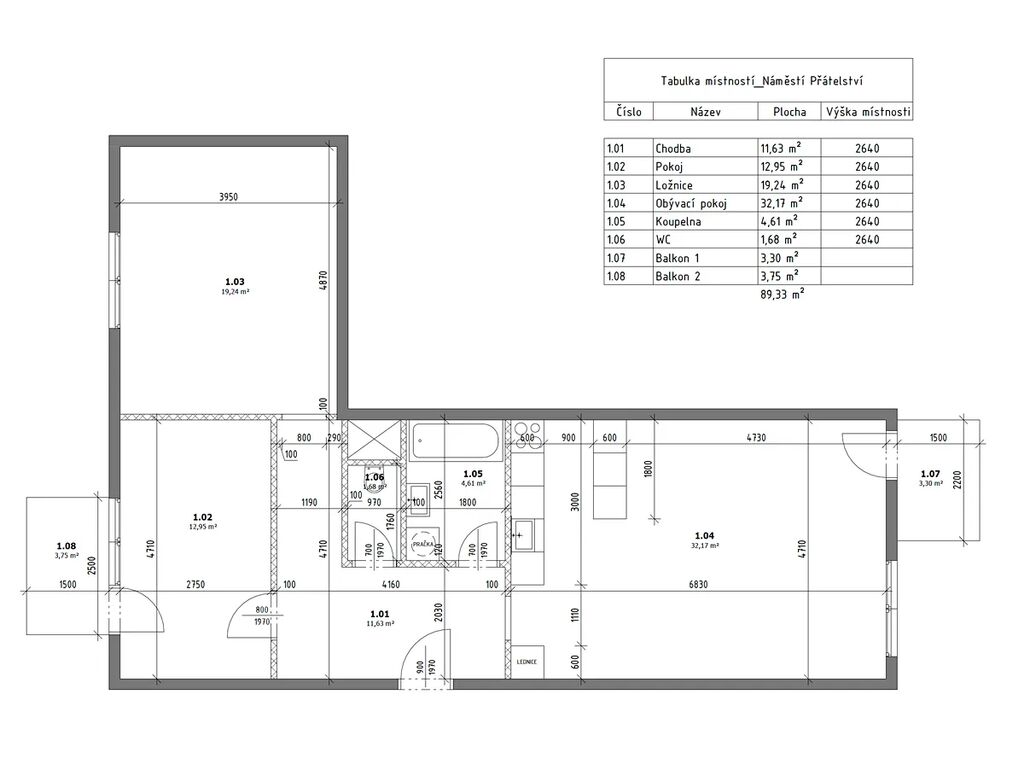 - obývací pokoj s kuchyňským koutem (32,17 m²)