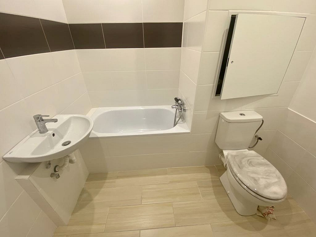 - Koupelna s vanou, napojením na pračku, toaletou, umyvadlem